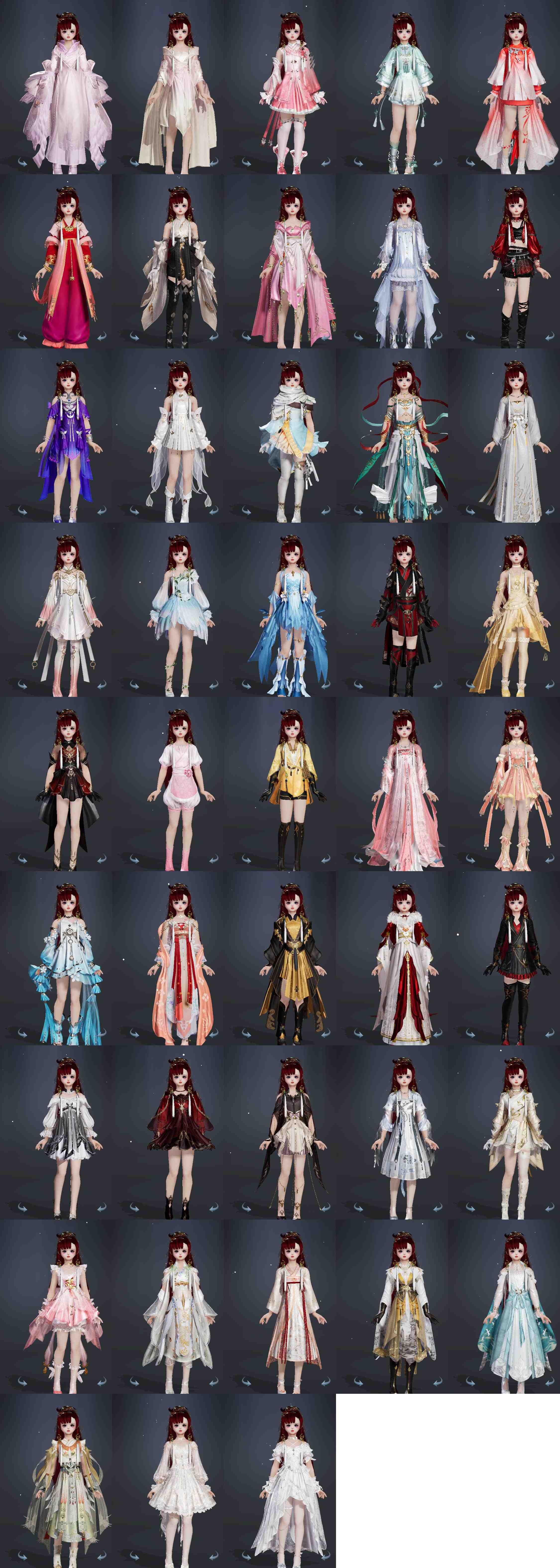 限时限量:[粉九壤, 红云飞, 侠影飞瀑, 十三万资历衣, 冷霜芳萼, 烟花套, 清夜星居, 十二周年工作服, 十三周年成衣, 庭落西风, 十四周年工作服, 云闲归鹤]