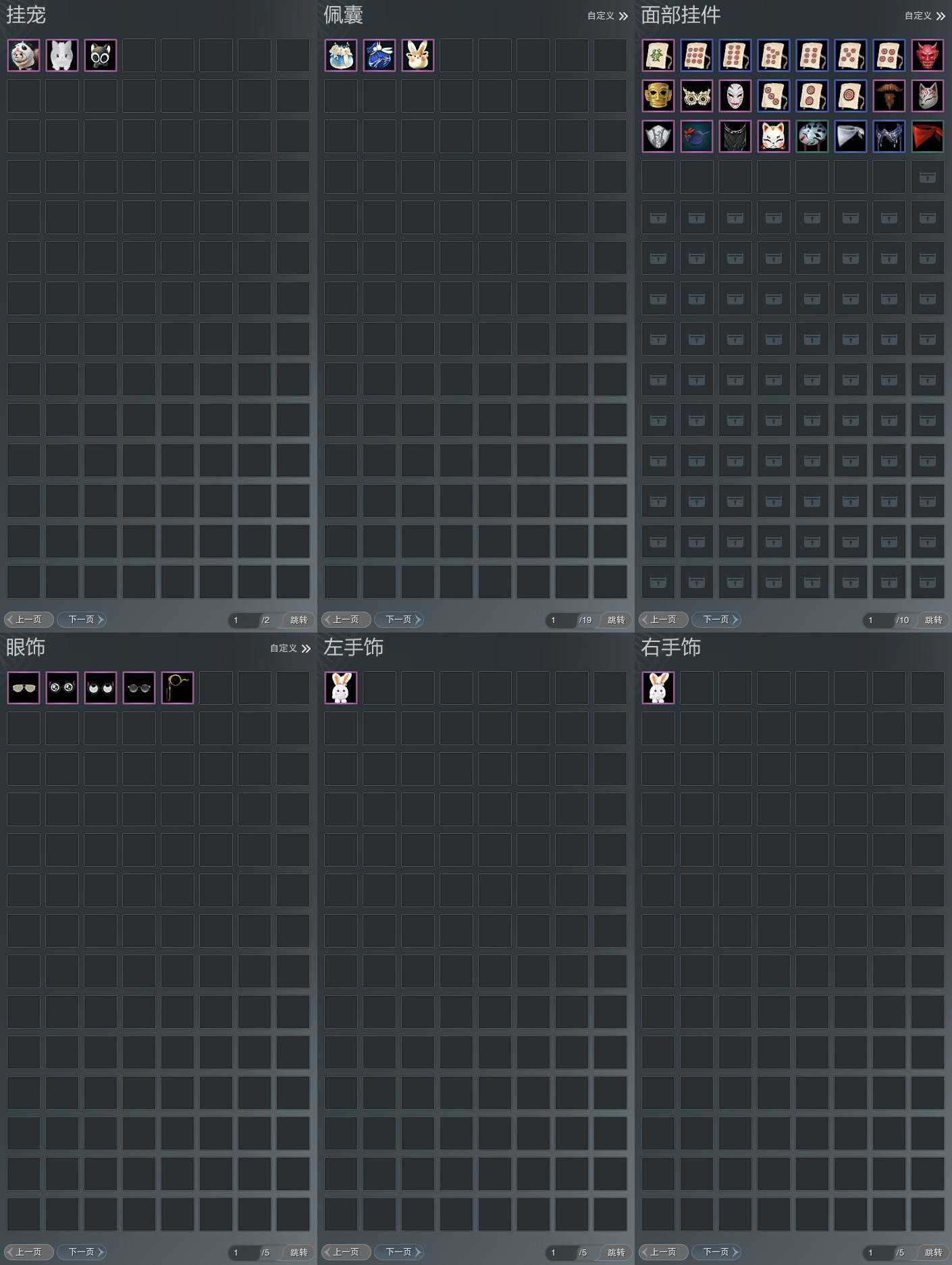盒子:[丝路盒(缺背挂), 雪月盒, 踏云盒, 小白龙盒, 二七盒, 毒盒, 蓬莱盒(缺披风), 四中粉盒(缺背挂), 飞天盒, 白琼枝盒(豪), 三代元宵盒, 白四元盒, 粉游园(豪), 小熊盒, 婚纱盒]
