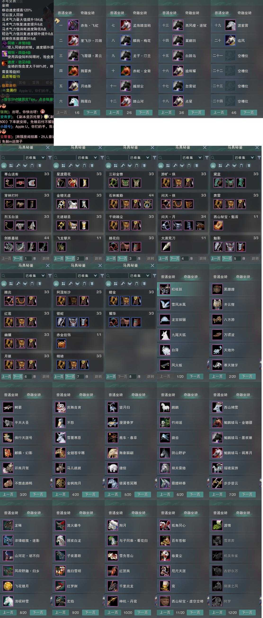 【坐骑】20个[西风瘦逐狱, 飞霞骠黑云, 里飞沙沉烟, 劲足赤兔飞虹]