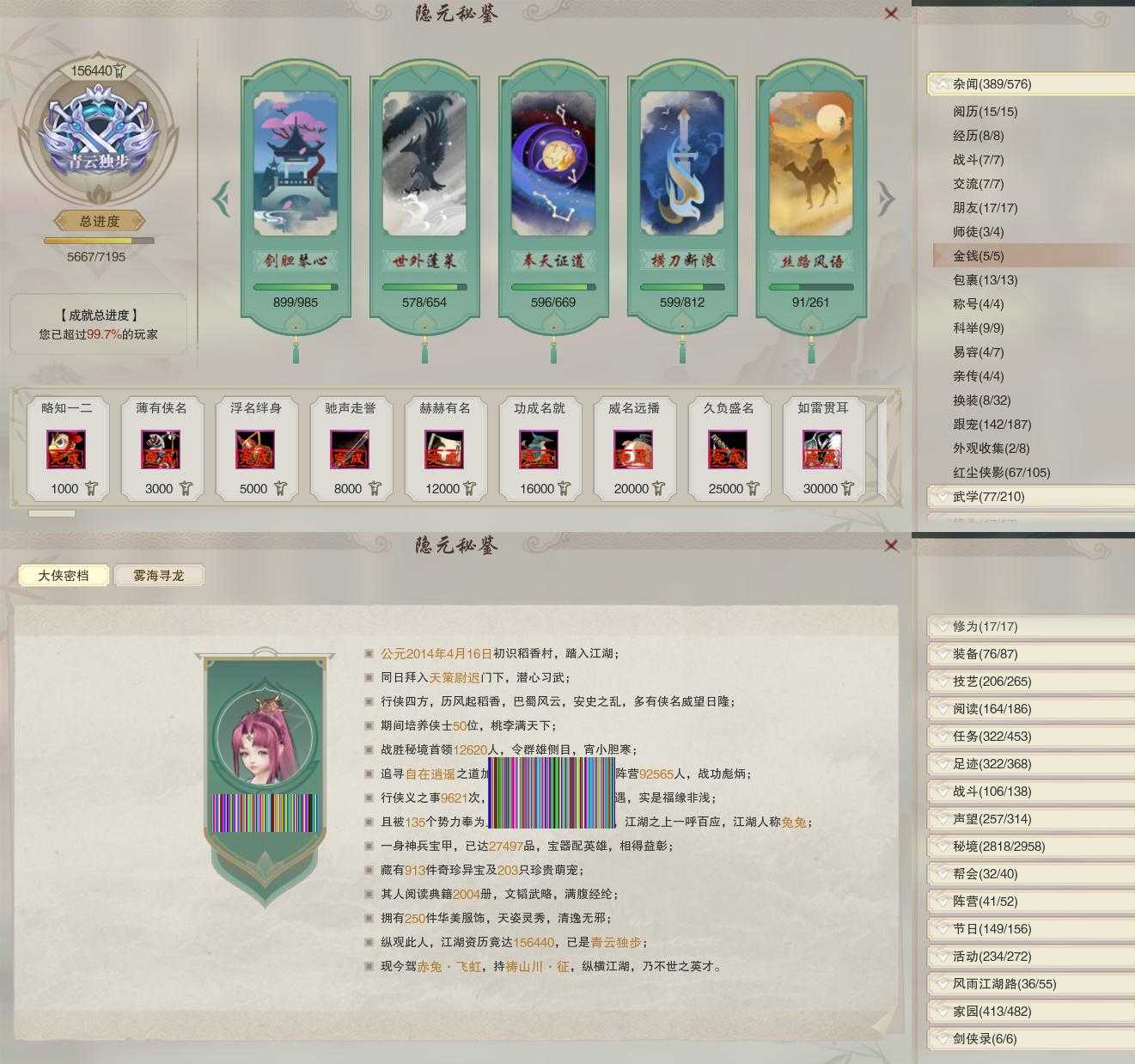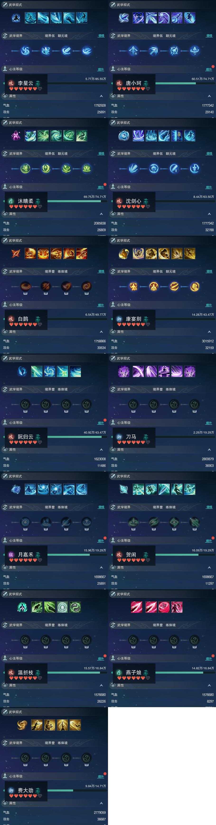 【同伴】李星云83级境界伍,唐小珂82级境界伍,沐晴柔82级境界伍,沈剑心82级境界伍,白鹊79级境界壹,康宴别78级境界伍,阮归云78级境界壹,刀马72级境界壹,月嘉禾72级境界壹,贺闲72级境界壹,温折枝71级境界壹,燕子娘71级境界壹,费大劲70级境界壹