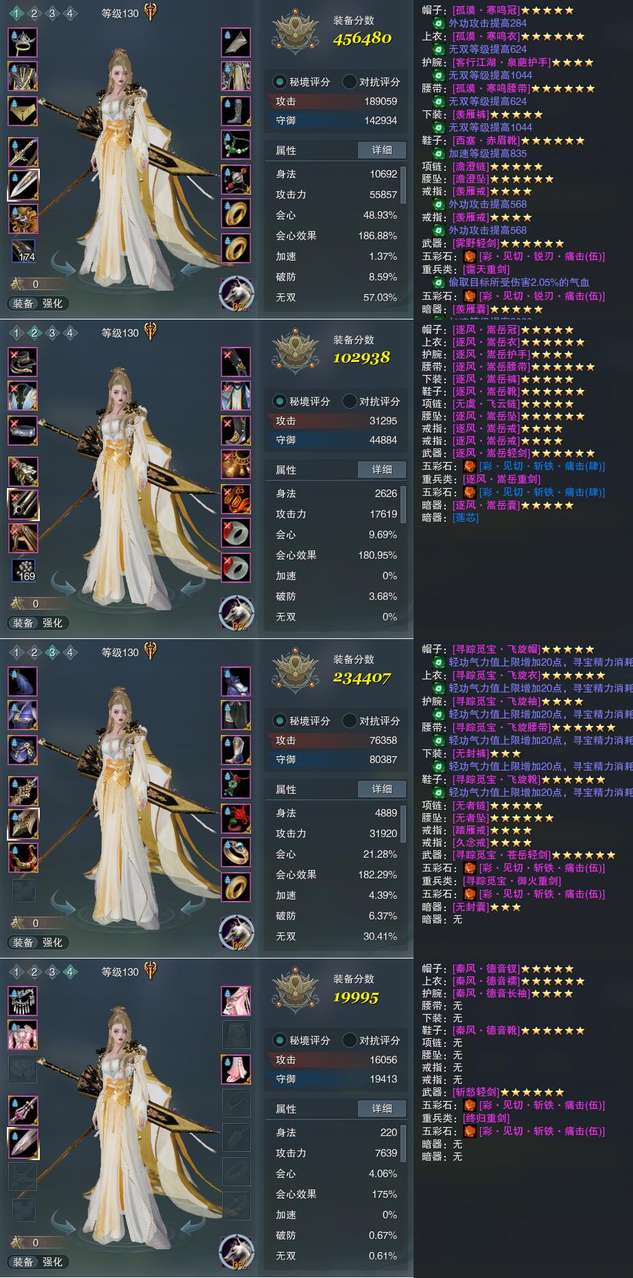 【装备】130级,山居剑意/问水诀PVE456480,装备二102938,装备三234407,装备四19995
