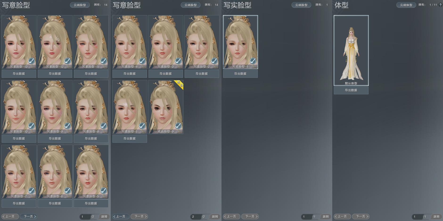 【捏脸】写意脸型14个,写实脸型1个,体型1个
