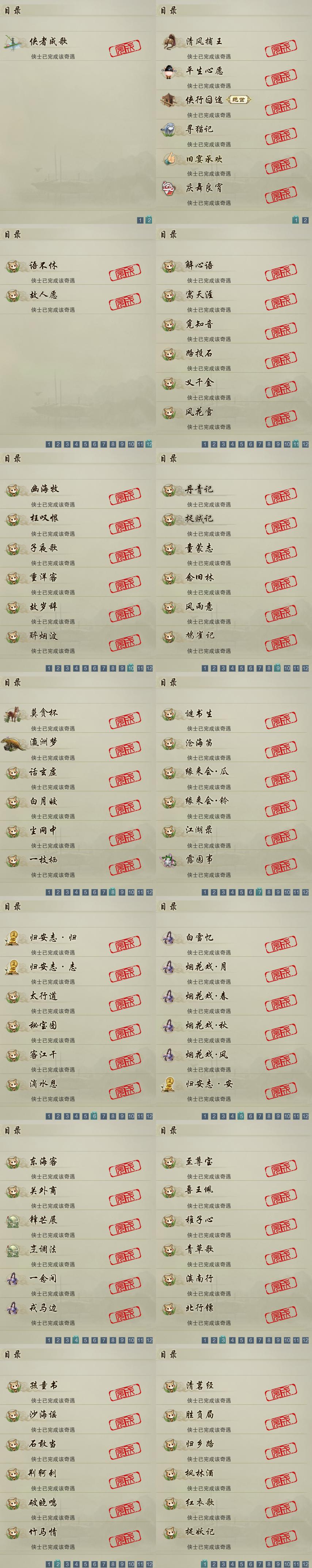 【奇遇】7个[平生心愿, 清风捕王, 侠行囧途, 寻猫记, 庆舞良宵, 旧宴承欢, 侠者成歌]