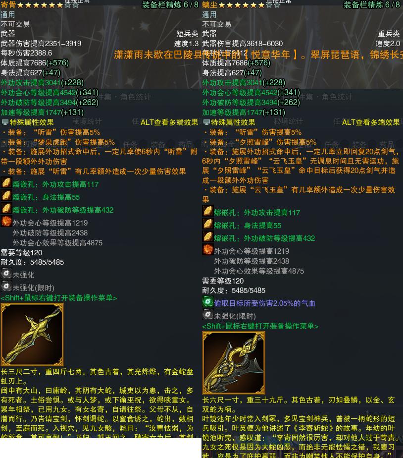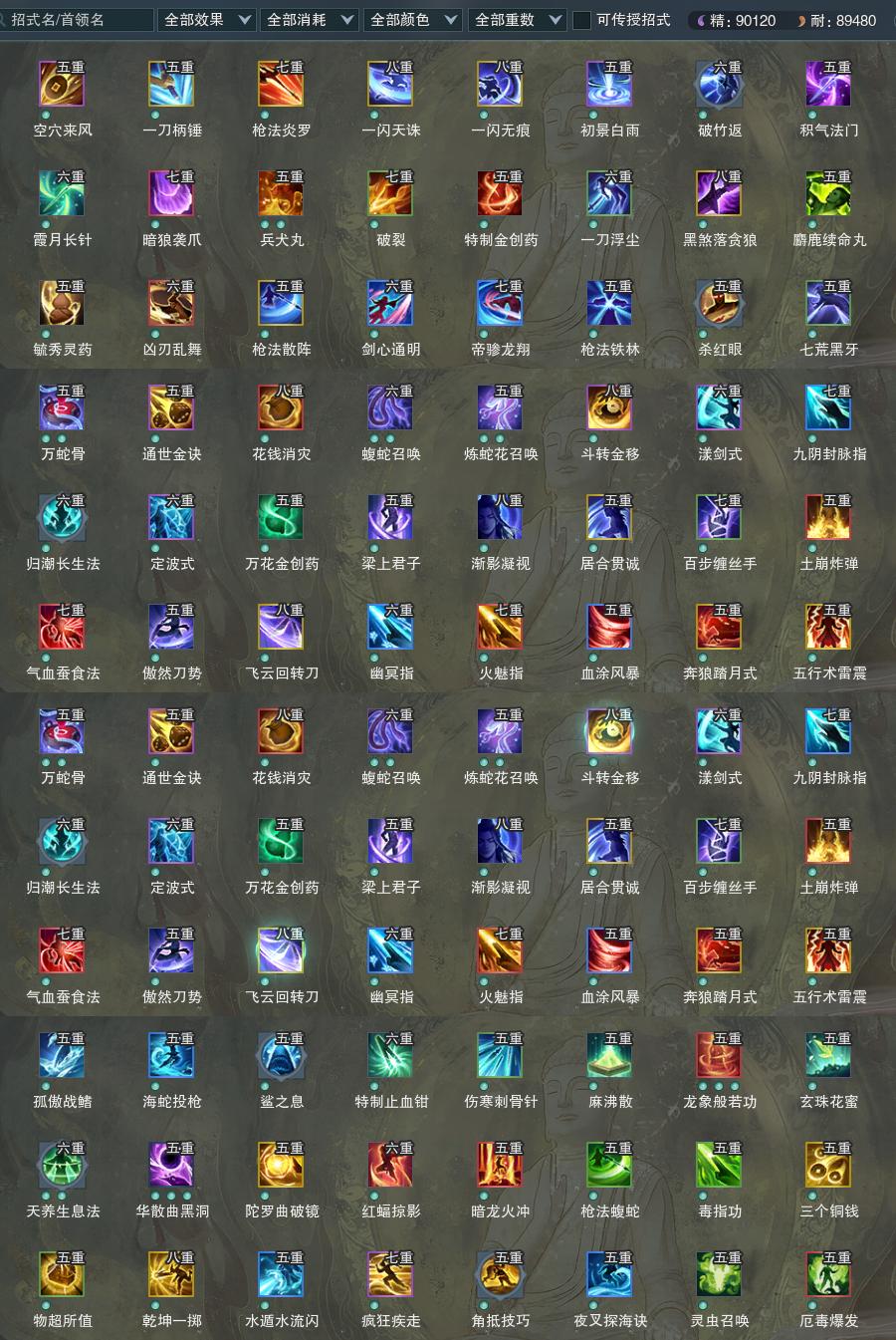 【橙武】(仅本门派)[120小铁*37, 130小铁*9, 100玄晶*2, 90玄晶*1, 80玄晶*1, 70玄晶*2, 110小铁*208, 100小铁*219, 95小铁*217, 90小铁*221, 80小铁*243, 70小铁*217, 120CW寄骨, 120CW螭尘, 90CW泰阿, 门派特效岚尘金蛇]