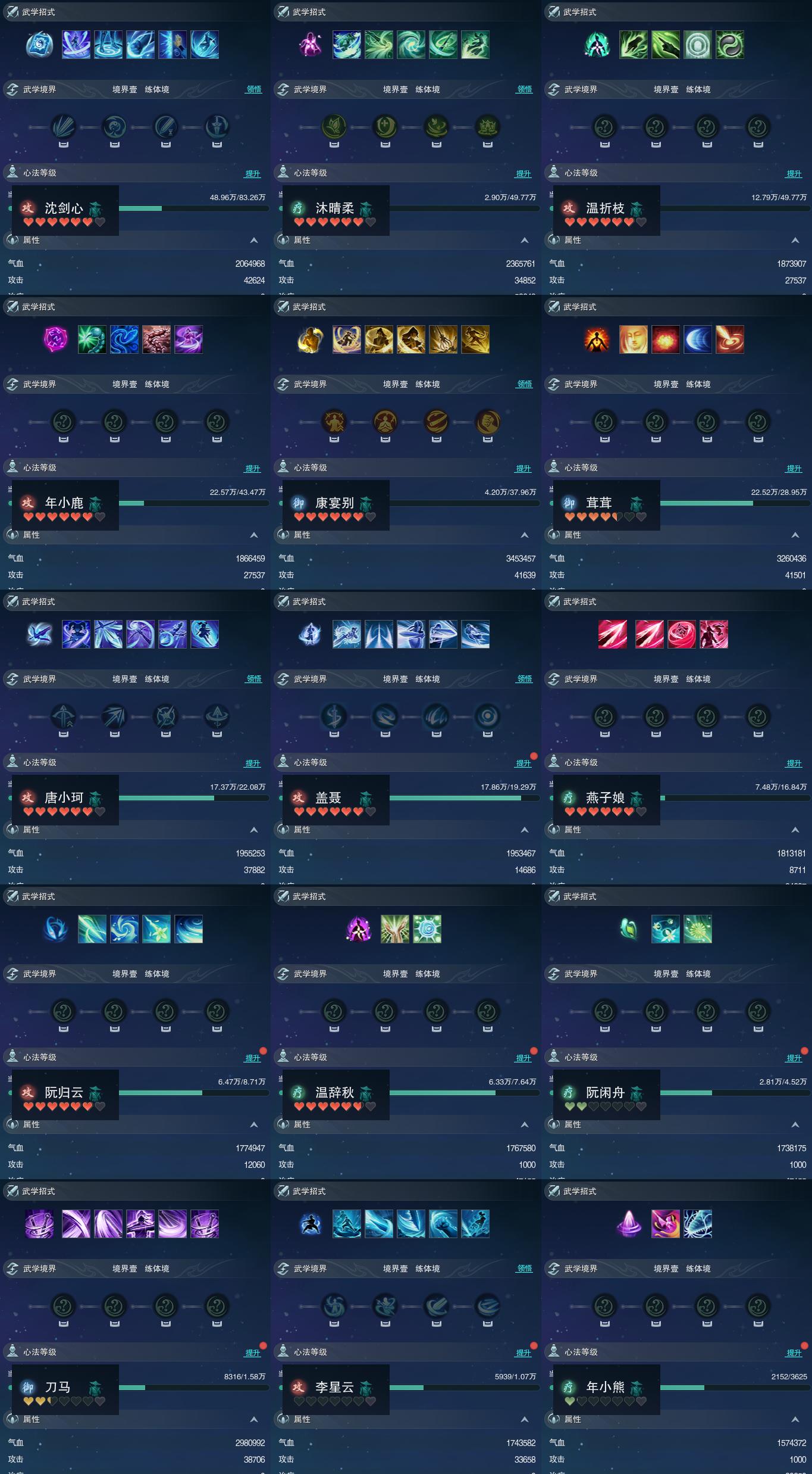 【同伴】沈剑心84级境界壹,沐晴柔79级境界壹,温折枝79级境界壹,年小鹿78级境界壹,康宴别77级境界壹,茸茸75级境界壹,唐小珂73级境界壹,盖聂72级境界壹,燕子娘71级境界壹,阮归云66级境界壹,温辞秋65级境界壹,阮闲舟61级境界壹,刀马53级境界壹,李星云50级境界壹,年小熊39级境界壹