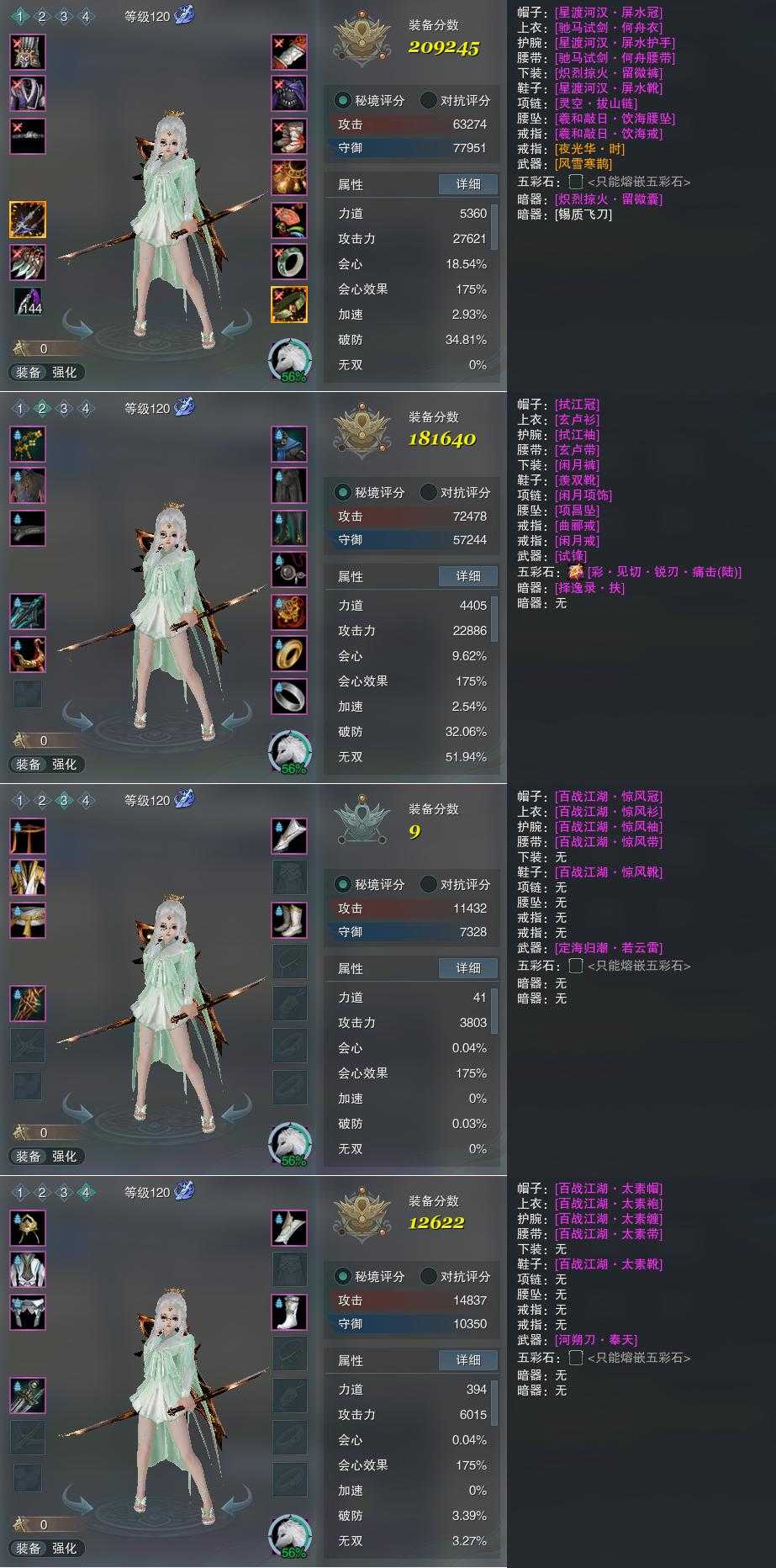 【装备】装备一209245,装备二181640,装备三9,装备四12622