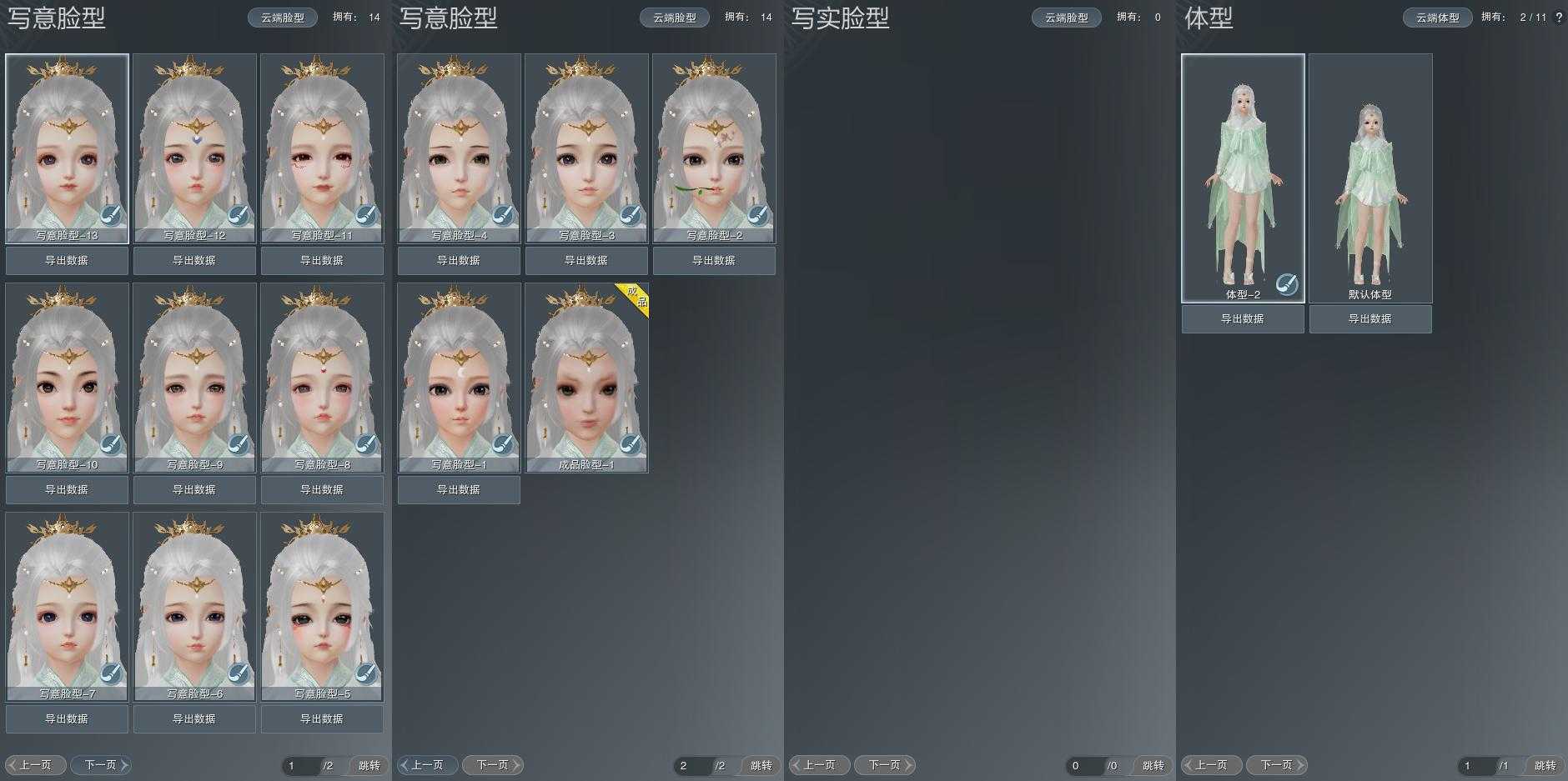 【捏脸】写意脸型14个,写实脸型0个,体型2个