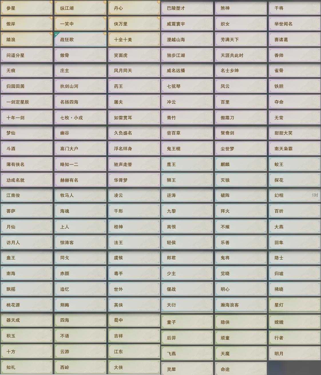 【称号】[纵江湖, 侠万里, 战狂歌]