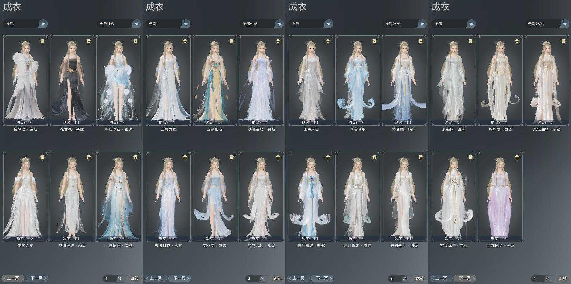 单盒成衣:[白菩提衣, 蓝水袖衣, 白忘川衣, 婚纱衣, 蓝陇西成衣]