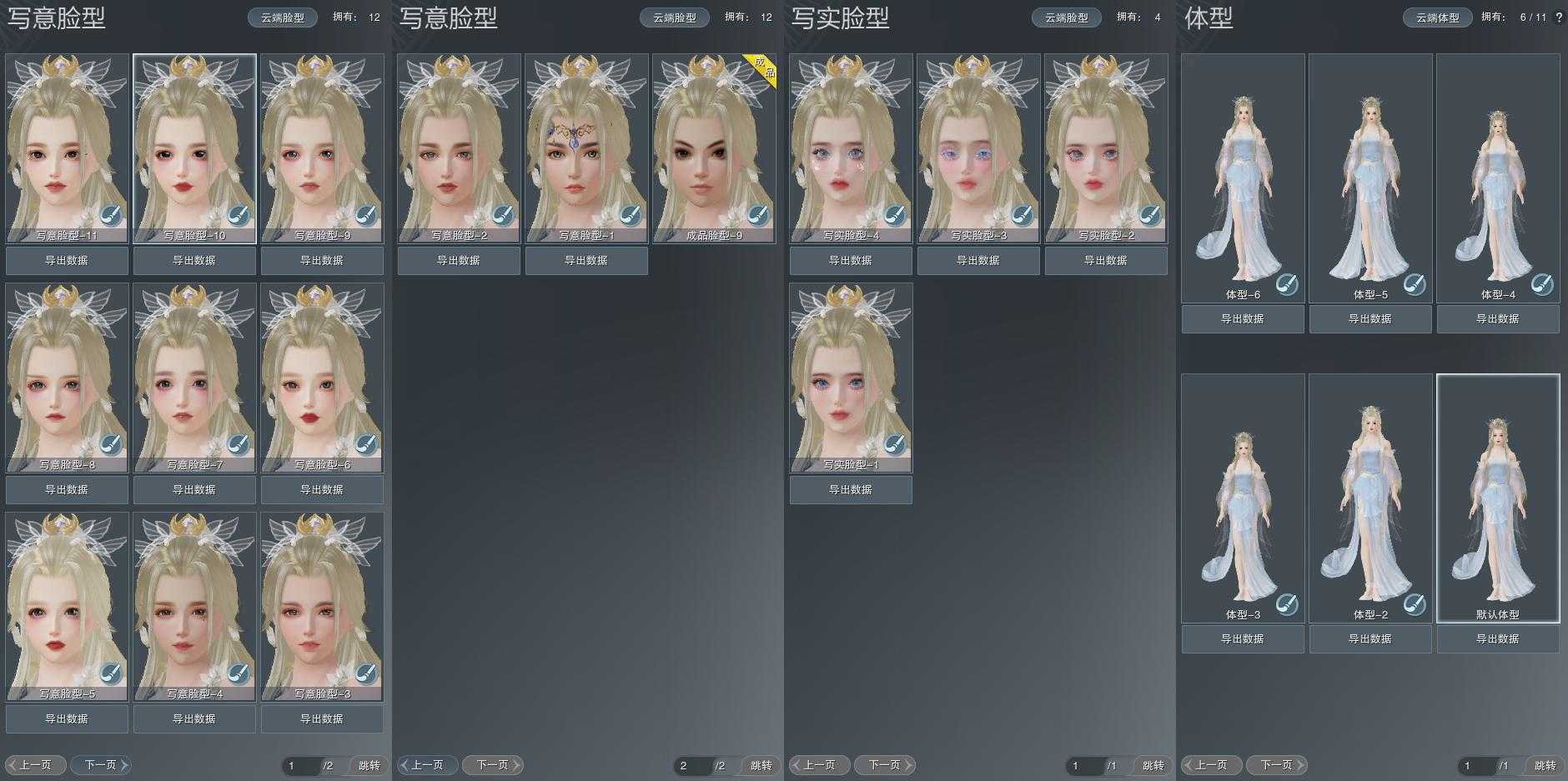 【捏脸】写意脸型12个,写实脸型4个,体型6个
