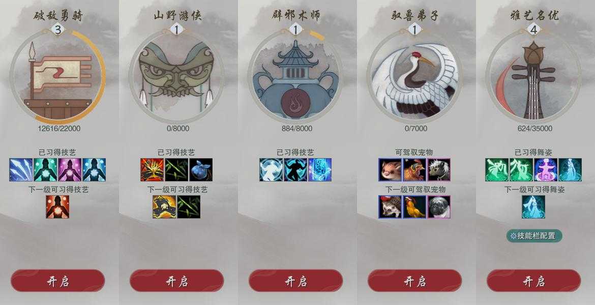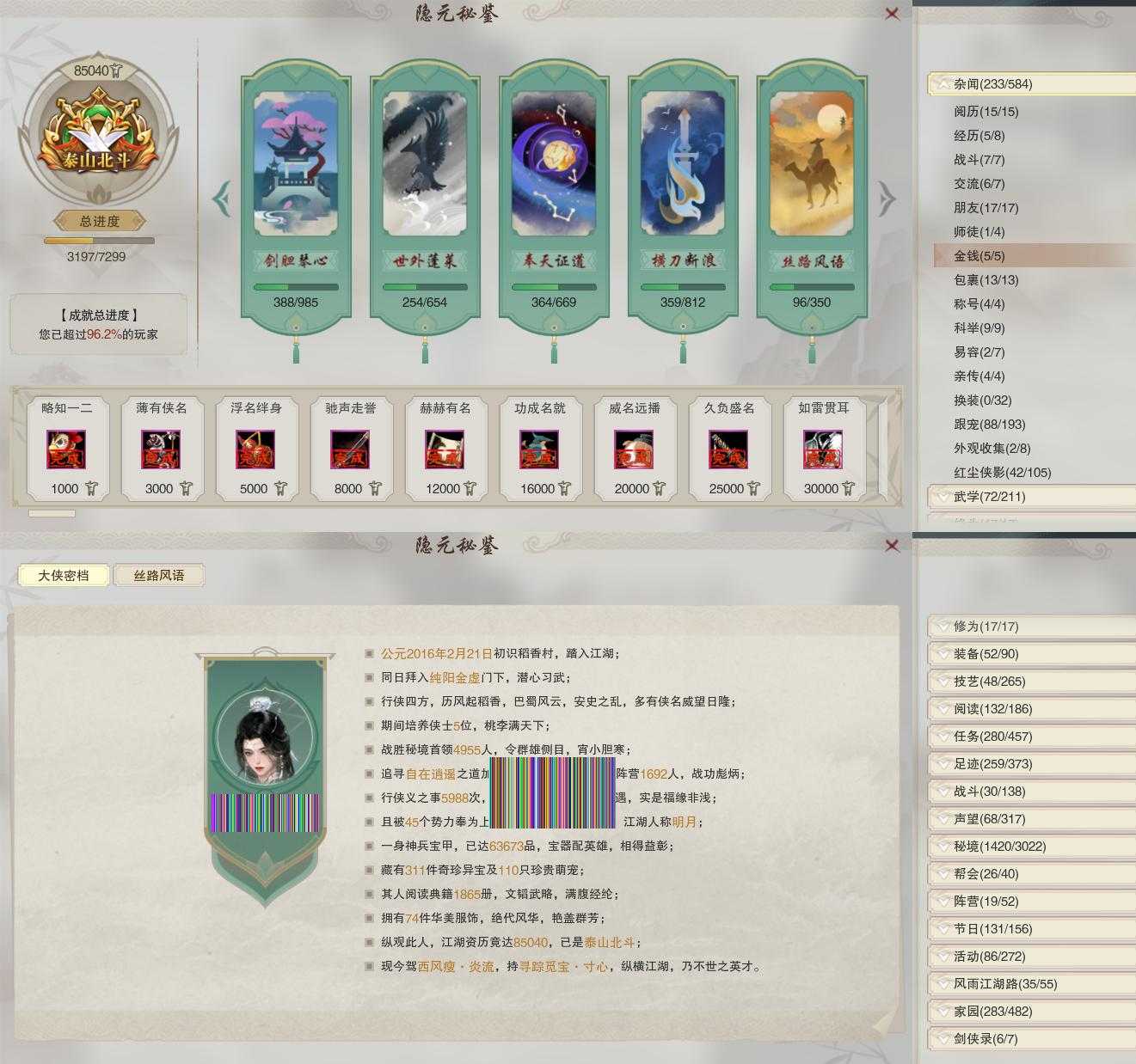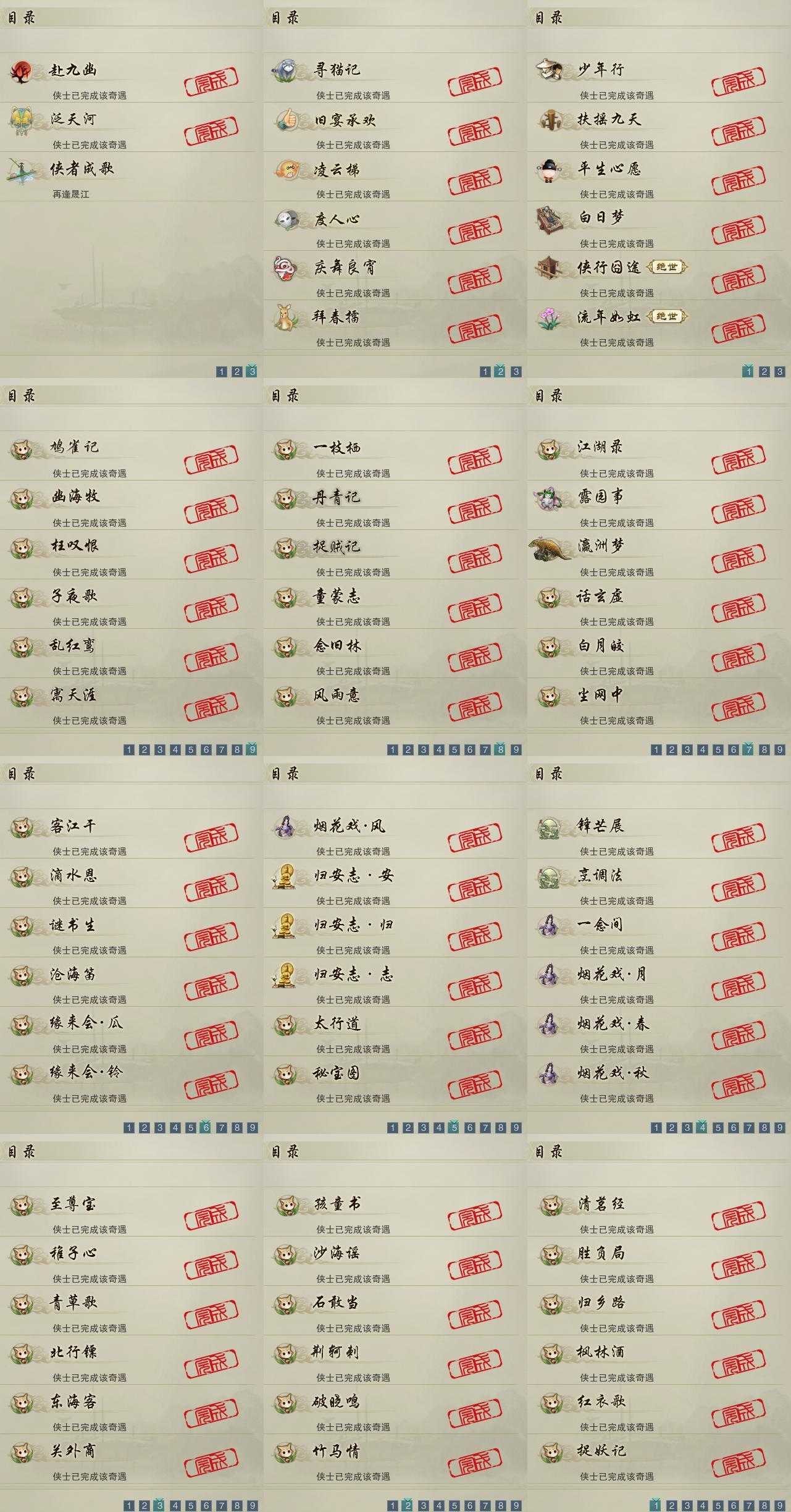 【奇遇】15个[白日梦, 平生心愿, 少年行, 扶摇九天, 流年如虹, 寻猫记, 侠行囧途, 庆舞良宵, 凌云梯, 赴九幽, 度人心, 旧宴承欢, 泛天河, 侠者成歌, 拜春擂]