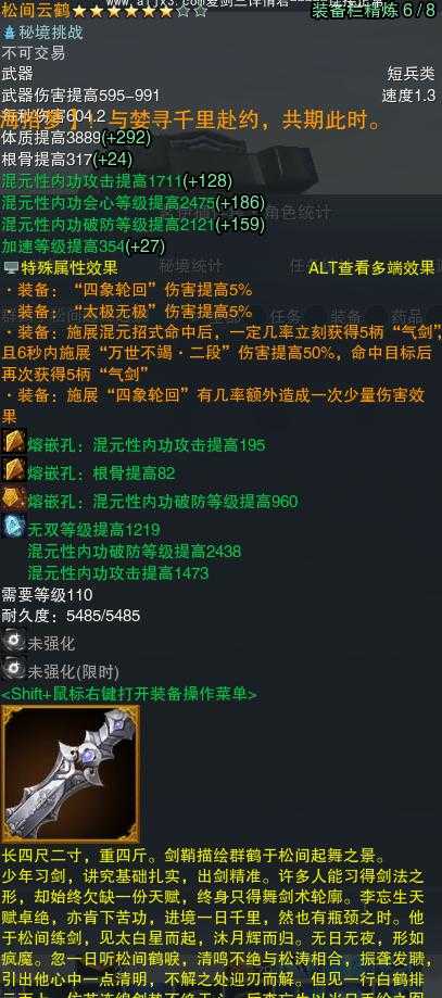 【橙武】(仅本门派)[120小铁*5, 80玄晶*1, 110小铁*1, 100小铁*3, 95小铁*57, 90小铁*5, 80小铁*139, 70小铁*21, 110CW松间云鹤, 100CW霜影玄玑, 门派特效画影]