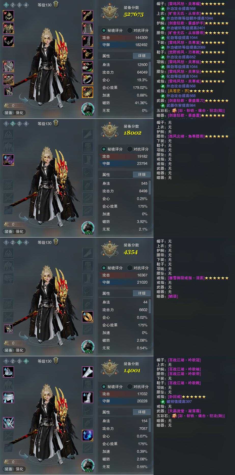 【装备】130级,分山劲PVP527675,装备二18002,装备三4354,装备四14001