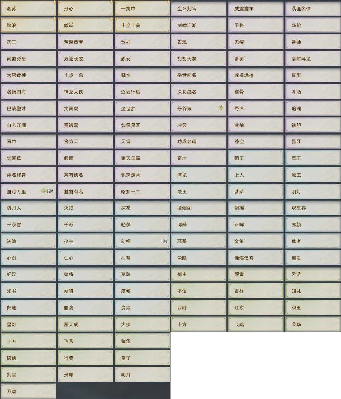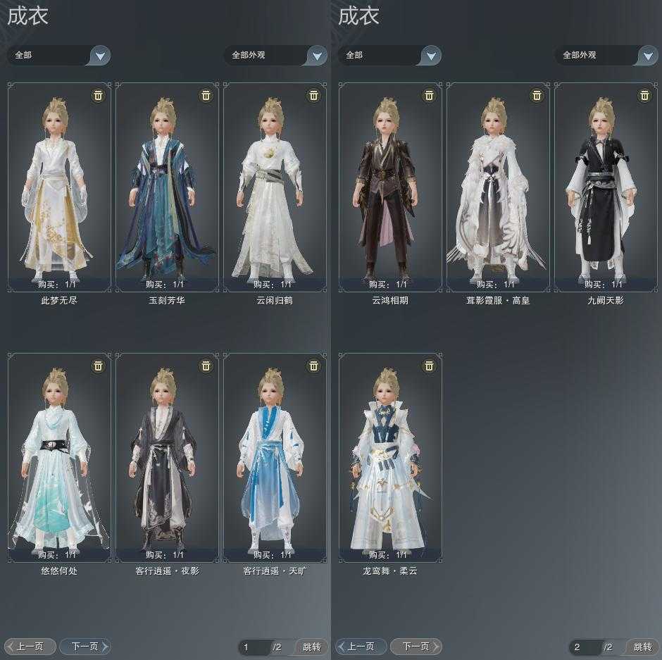 限时限量:[十二周年工作服, 客行逍遥夜影, 客行逍遥天旷, 十三周年成衣, 十四周年工作服, 云闲归鹤]