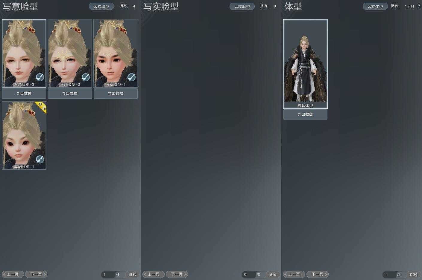 【捏脸】写意脸型4个,写实脸型0个,体型1个