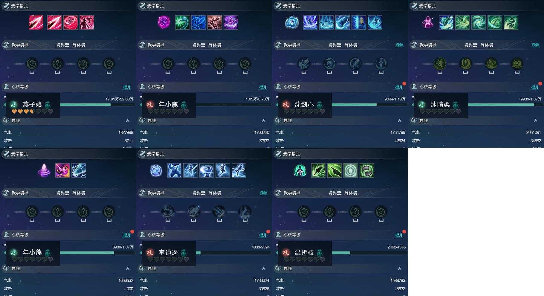 【同伴】燕子娘73级境界壹,年小鹿64级境界壹,沈剑心52级境界壹,沐晴柔50级境界壹,年小熊50级境界壹,李逍遥49级境界壹,温折枝41级境界壹