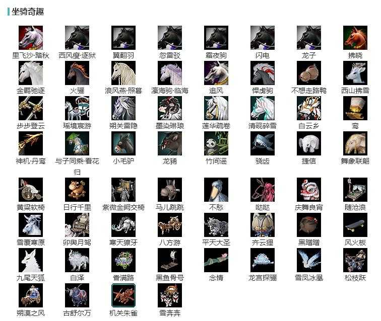 【坐骑】4个[西风瘦逐狱, 里飞沙踏秋, 金羁驰逐, 瀛海驹临海]