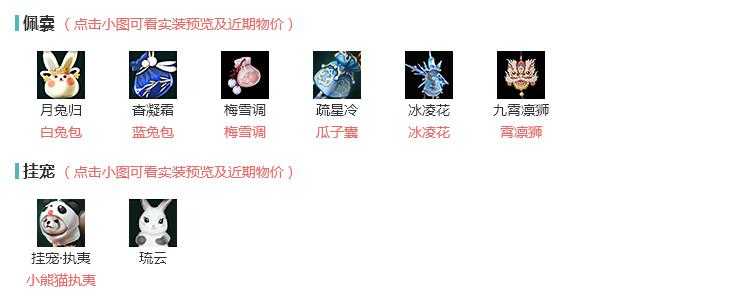 【佩囊】6个[白兔包, 蓝兔包, 梅雪调, 瓜子囊, 冰凌花, 霄凛狮]