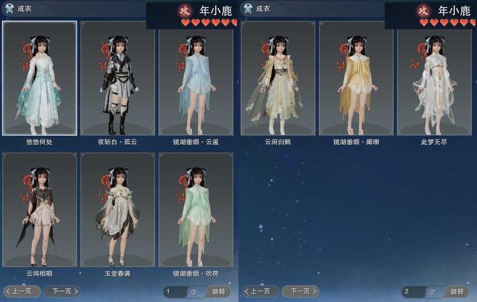 限时限量:[镜湖吹荷, 镜湖云遥, 镜湖阑珊, 琴台顾鸣筝, 点寒星樱尾, 十二周年工作服, 十三周年成衣, 十四周年工作服, 云闲归鹤]
