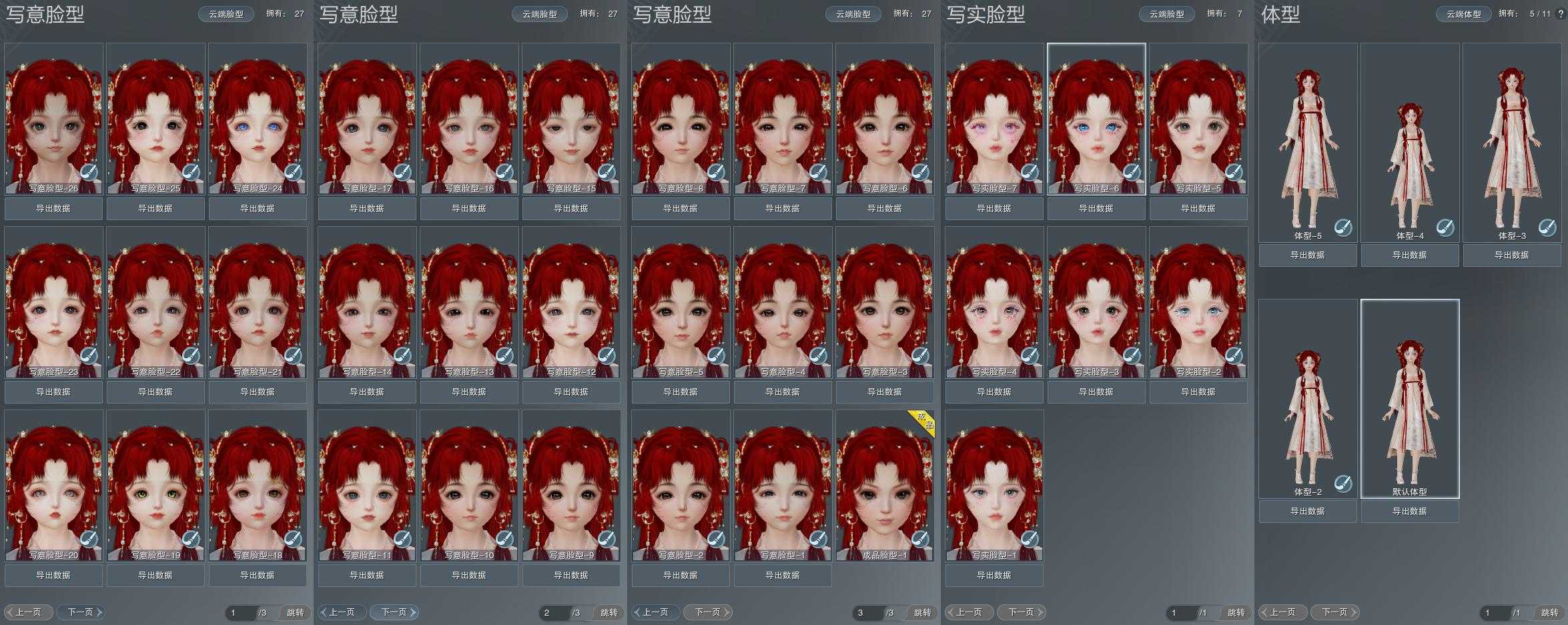 【捏脸】写意脸型27个,写实脸型7个,体型5个