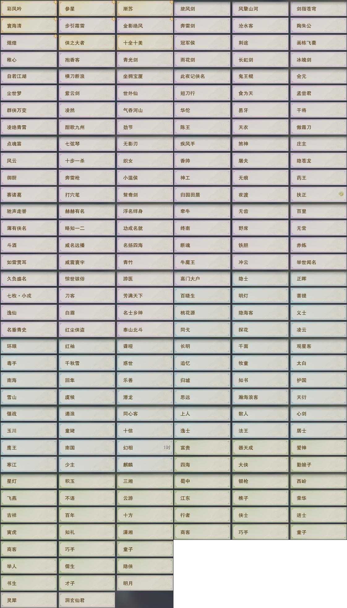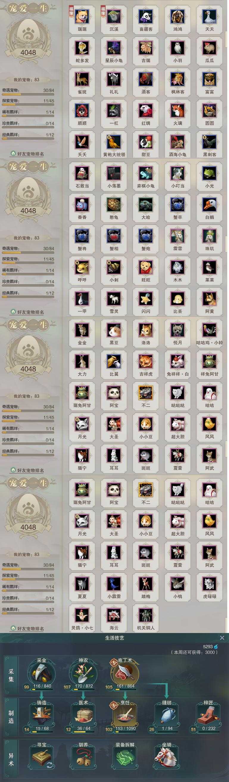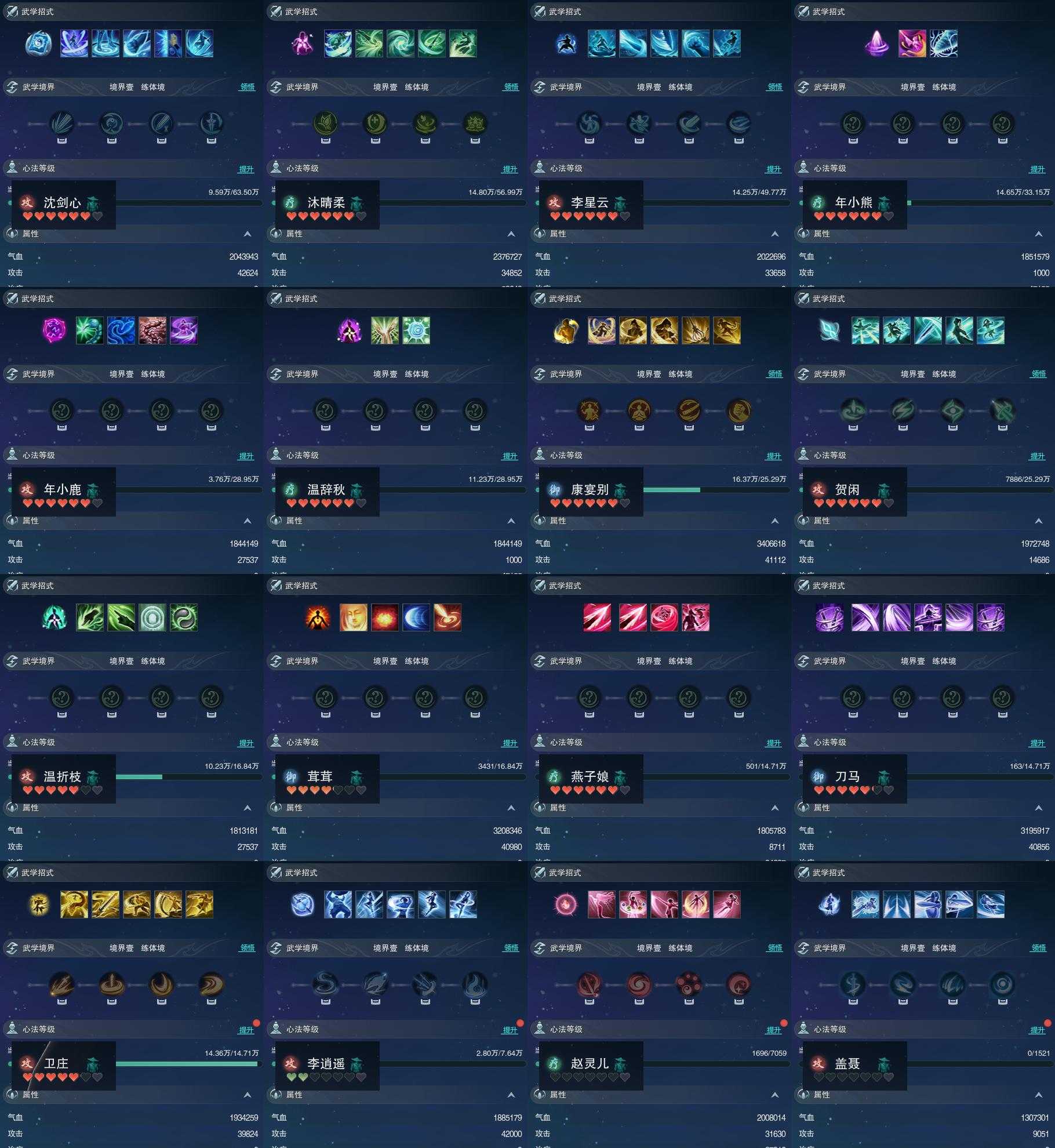 【同伴】沈剑心82级境界壹,沐晴柔80级境界壹,李星云79级境界壹,年小熊76级境界壹,年小鹿75级境界壹,温辞秋75级境界壹,康宴别74级境界壹,贺闲74级境界壹,温折枝71级境界壹,茸茸71级境界壹,燕子娘70级境界壹,刀马70级境界壹,卫庄70级境界壹,李逍遥65级境界壹,赵灵儿46级境界壹,盖聂1级境界壹