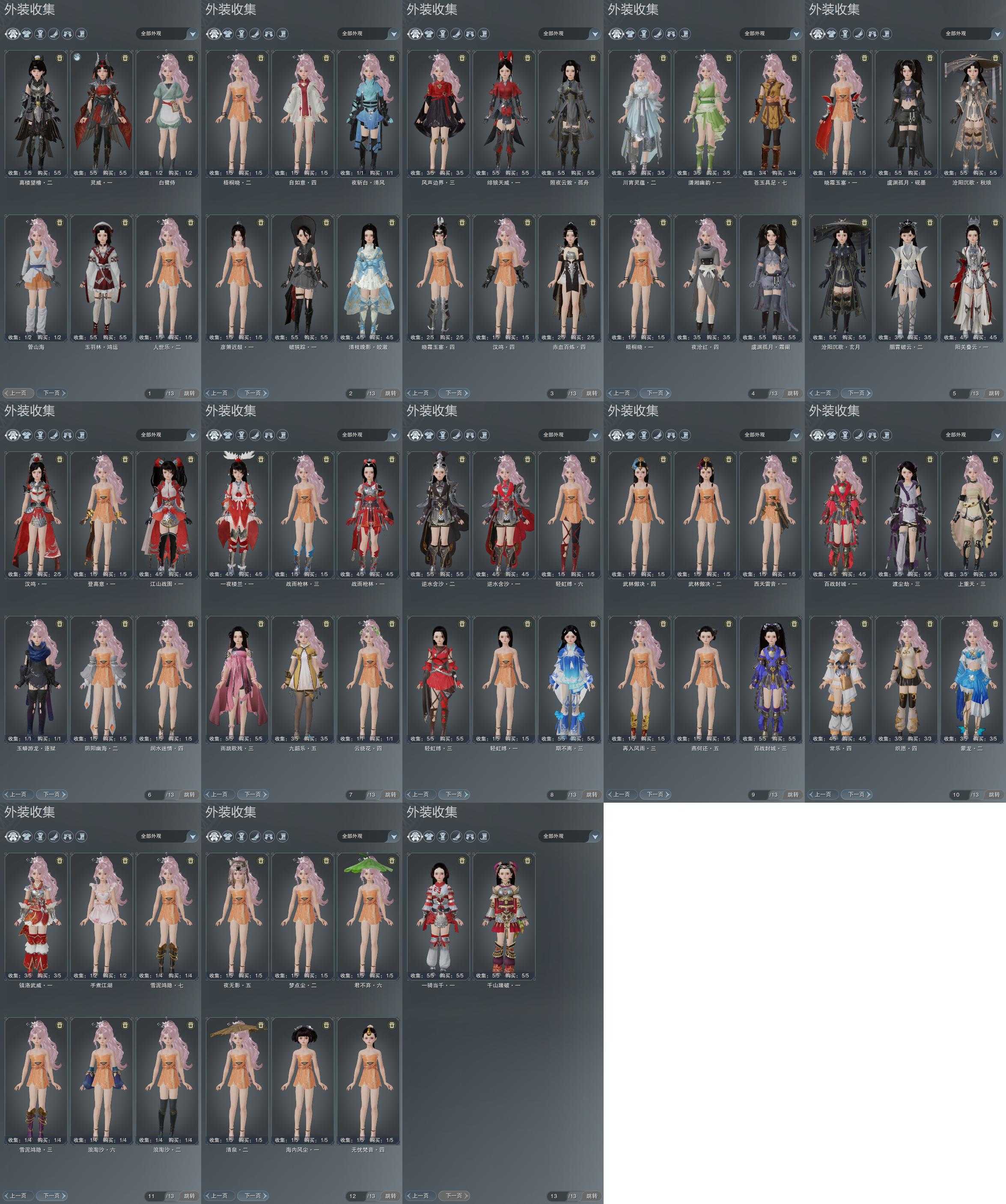 限时限量:[白九壤, 重华绯仪, 十三万资历衣, 中宵渊霜, 幽涧愀兮, 十三周年成衣, 十四周年工作服, 云闲归鹤]