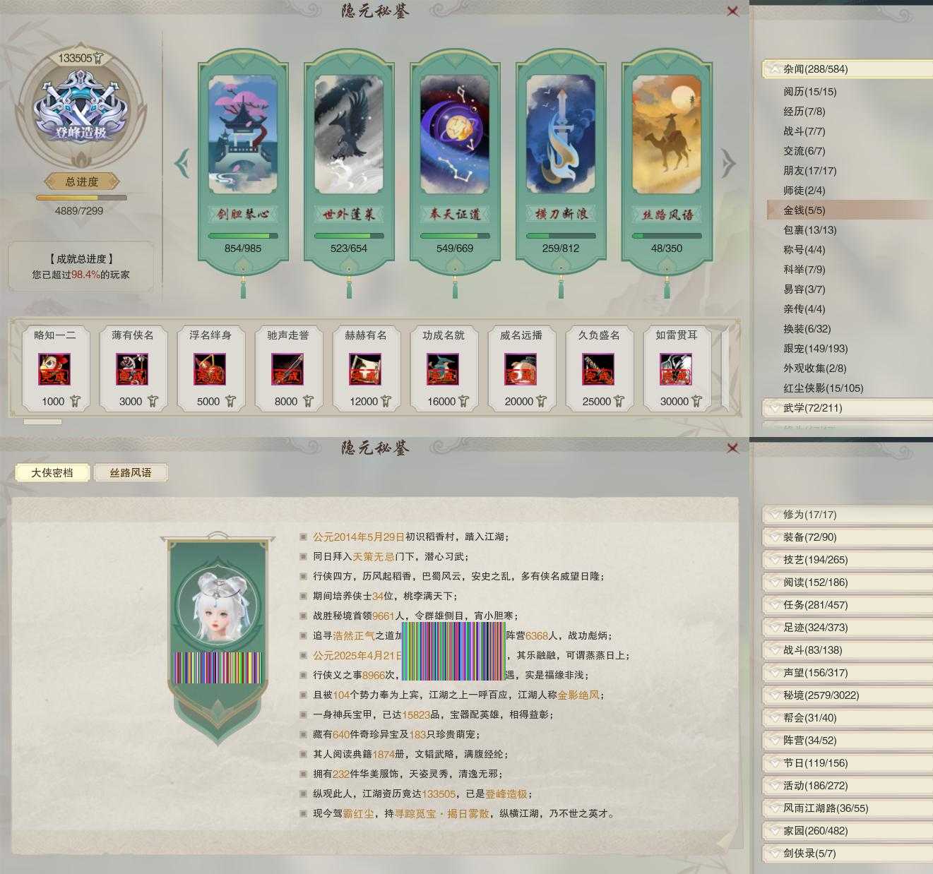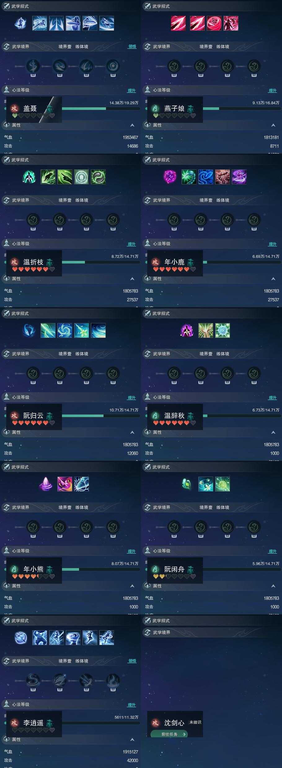 【同伴】盖聂72级境界壹,燕子娘71级境界壹,温折枝70级境界壹,年小鹿70级境界壹,阮归云70级境界壹,温辞秋70级境界壹,年小熊70级境界壹,阮闲舟70级境界壹,李逍遥68级境界壹,沈剑心级