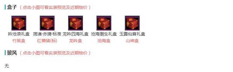 盒子:[沧海盒, 竹笛盒, 龙吟盒, 红懒猪(标), 山神盒]