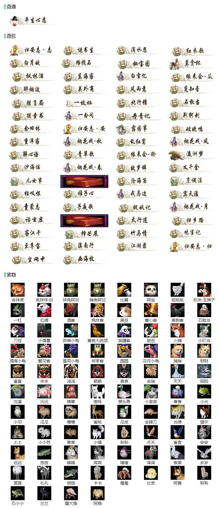 【奇珍】66个[枫林酒, 红衣歌, 归乡路, 胜负局, 孩童书, 捉妖记, 至尊宝, 石敢当, 稚子心, 滇南行]