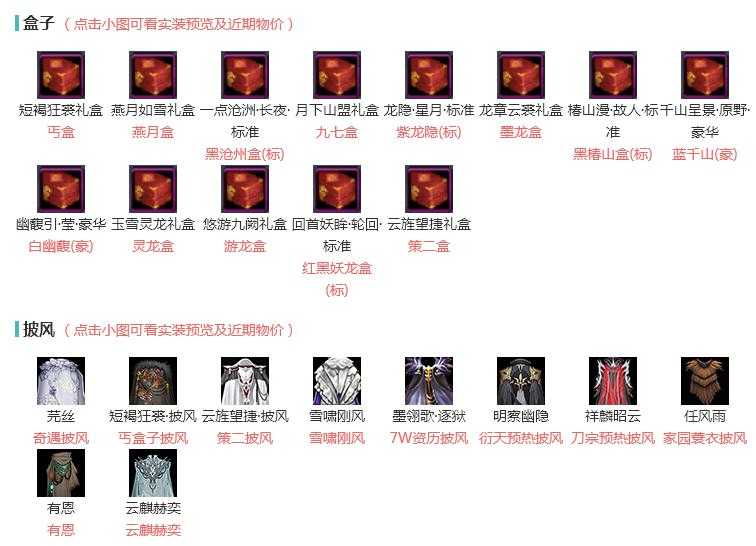 【披风】10个,[雪啸刚风, 7W资历披风, 衍天预热披风, 刀宗预热披风, 奇遇披风, 丐盒子披风, 策二披风, 云麒赫奕]