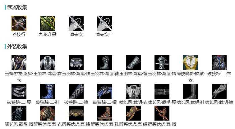 【拓印】4武器, 22成衣收集,110CW燕枝行