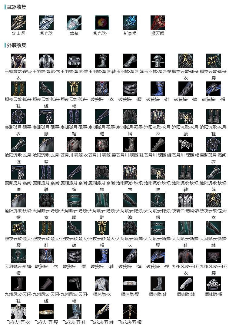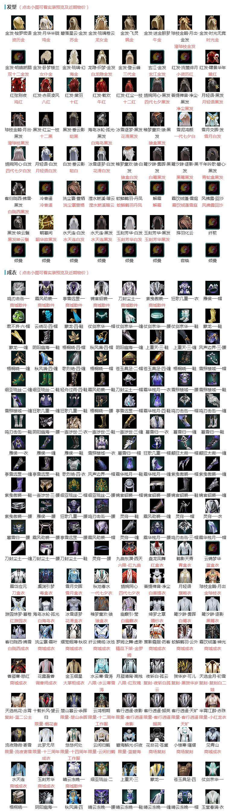限时限量:[水云寒雪涛, 客行逍遥天旷, 小红龙衣, 流夜寄雪, 烟花套, 蓝碧海, 楚山余晖, 客行逍遥撷英, 十二周年工作服, 云闲归鹤, 红玫瑰, 十四周年工作服, 十三周年成衣, 客行逍遥夜影]