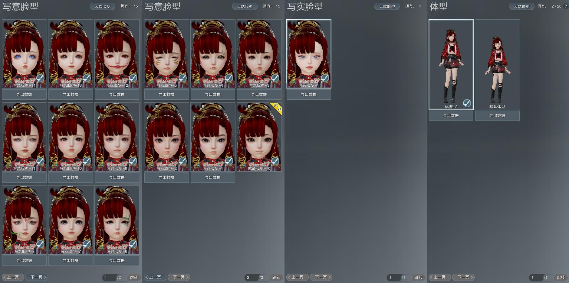 【捏脸】写意脸型15个,写实脸型1个,体型2个
