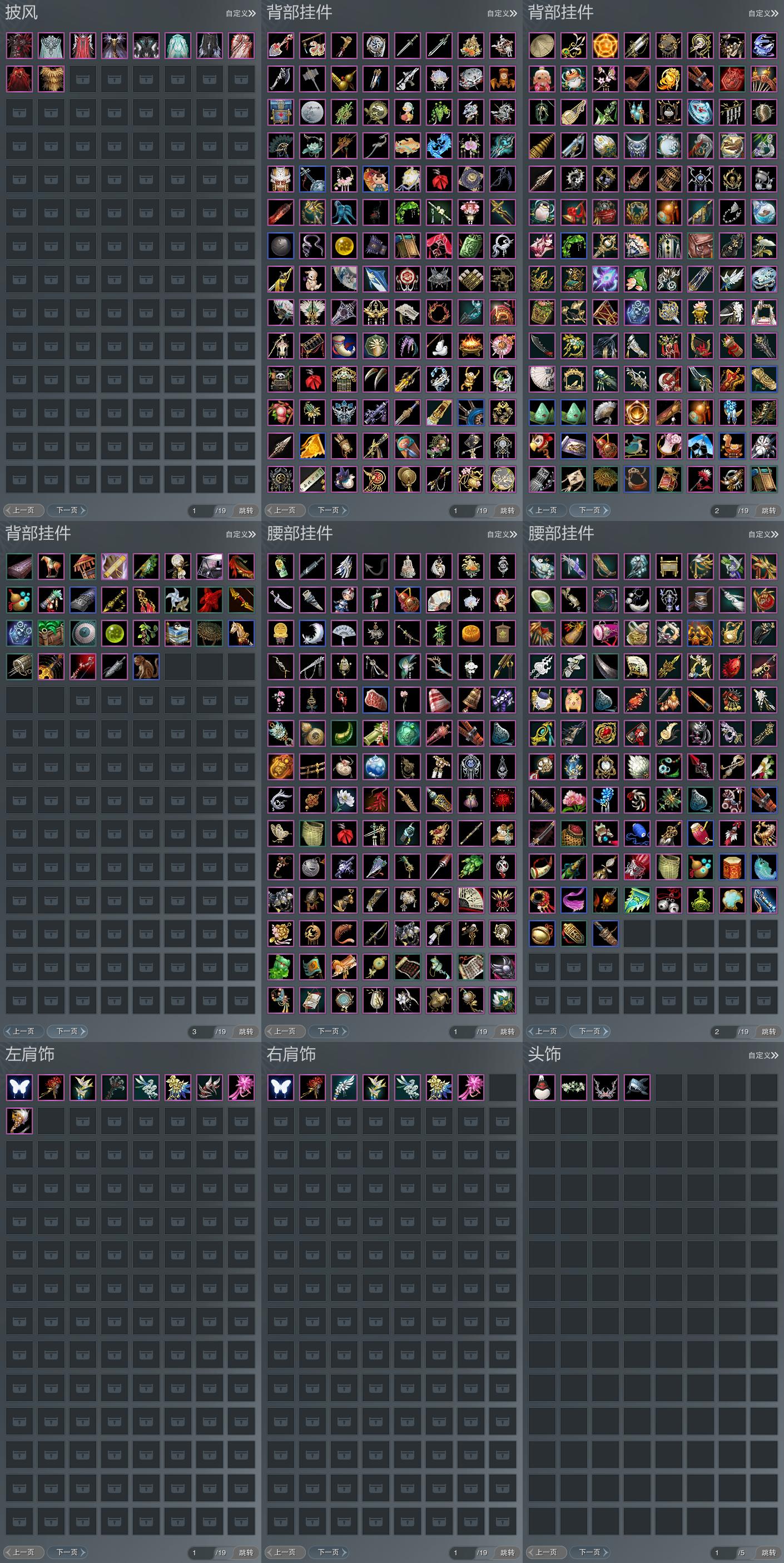 【肩饰】9左,7右,[觅花踪·碧空·左, 斩夜无常·左, 碧翎叠云·左, 华焰披锦·左][觅花踪·碧空·右, 斩夜无常·右, 碧翎叠云·右]