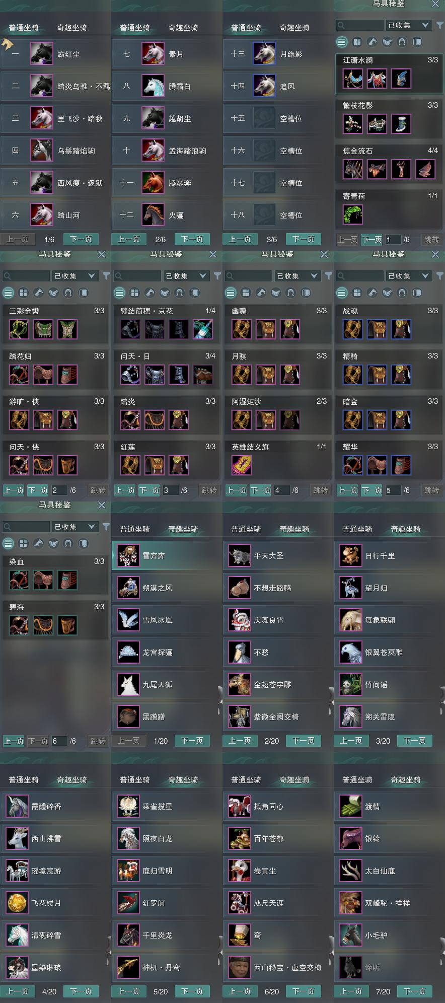 【坐骑】14个[踏炎不羁, 西风瘦逐狱, 里飞沙踏秋, 霸红尘, 乌鬃踏焰驹]