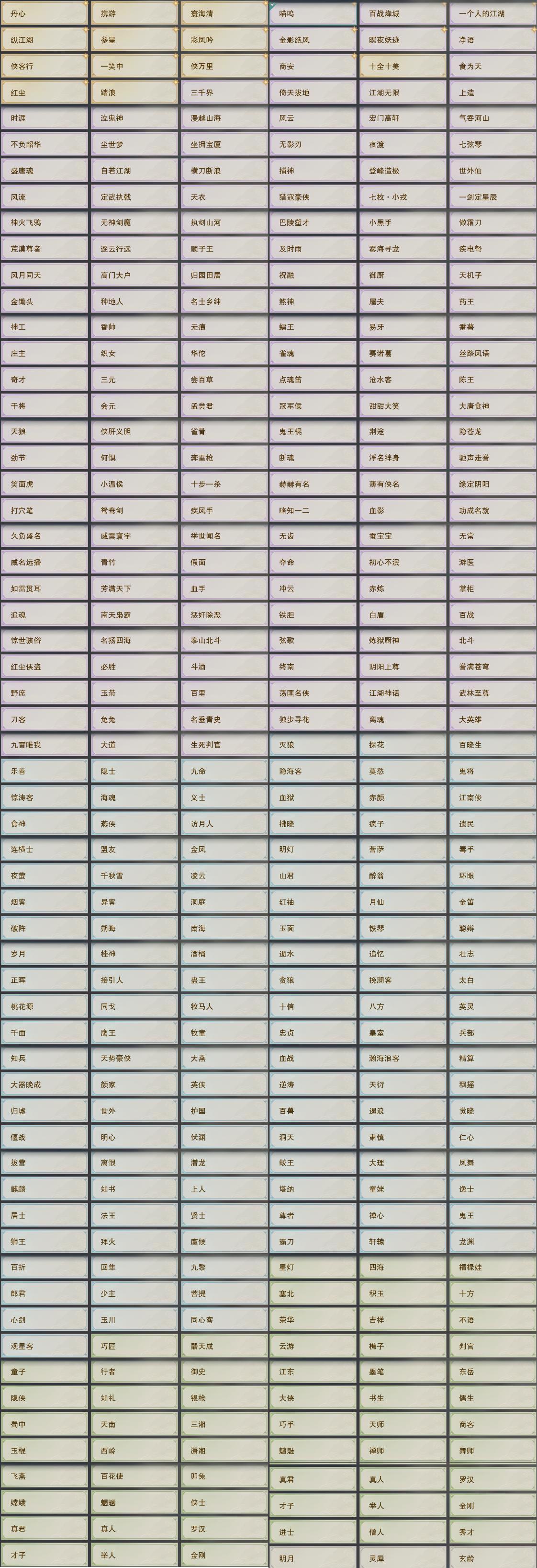 【称号】[纵江湖, 侠万里, 百战烽城]