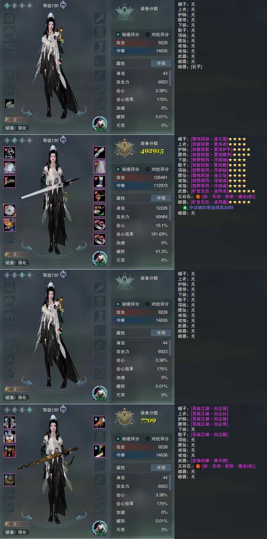 【装备】130级,装备一0,凌海诀PVP492915,装备三0,装备四7709