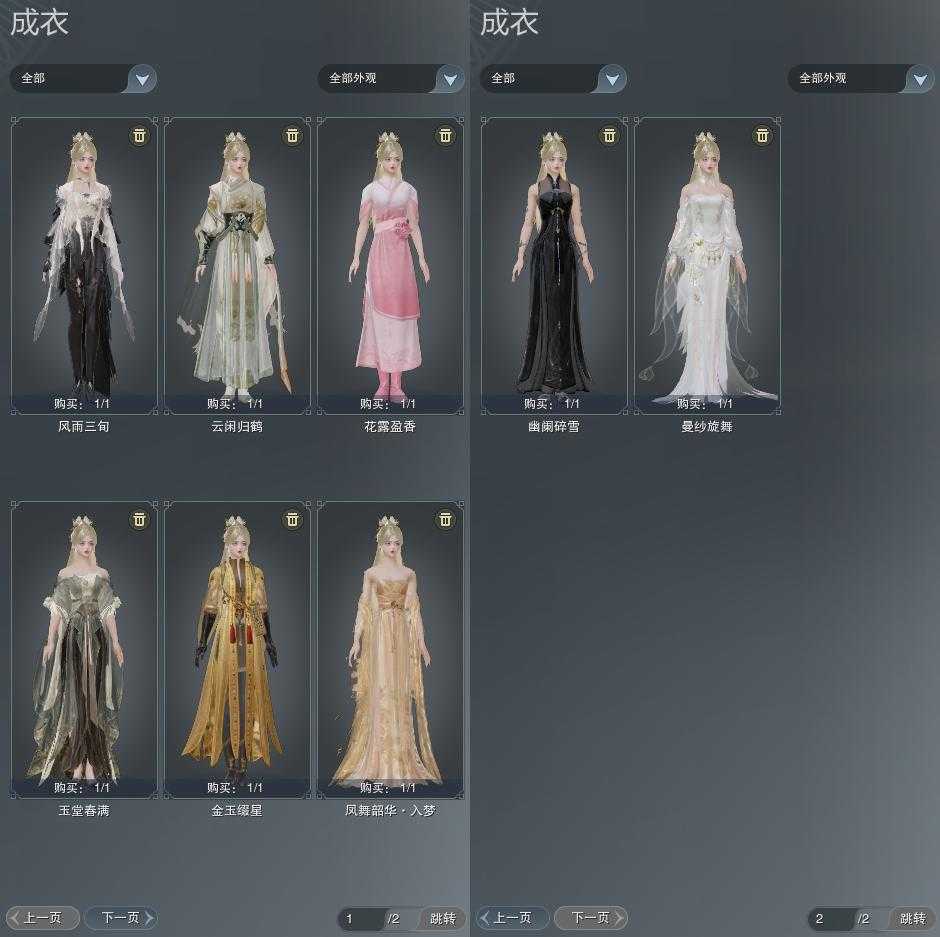 【成衣】总计12件,单盒成衣3件,限时限量6件,商城3件,下架0件