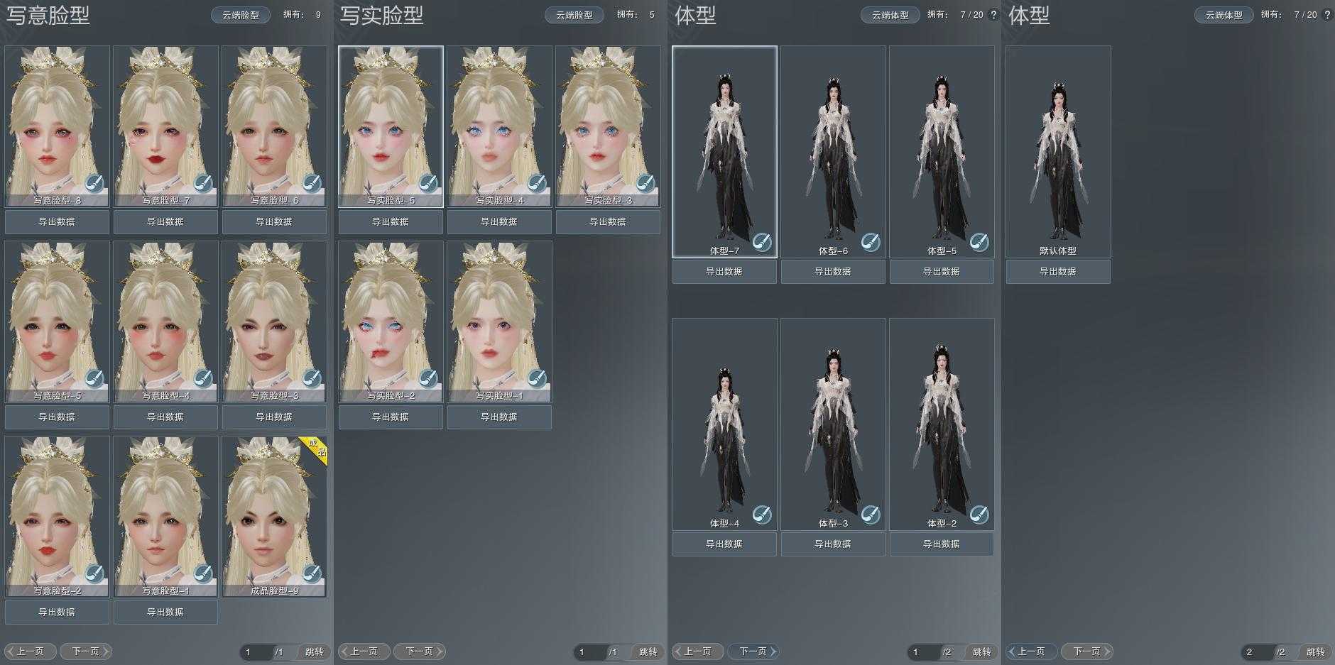 【捏脸】写意脸型9个,写实脸型5个,体型7个