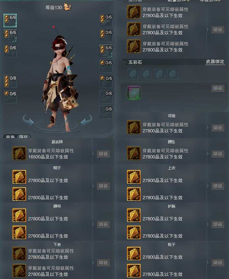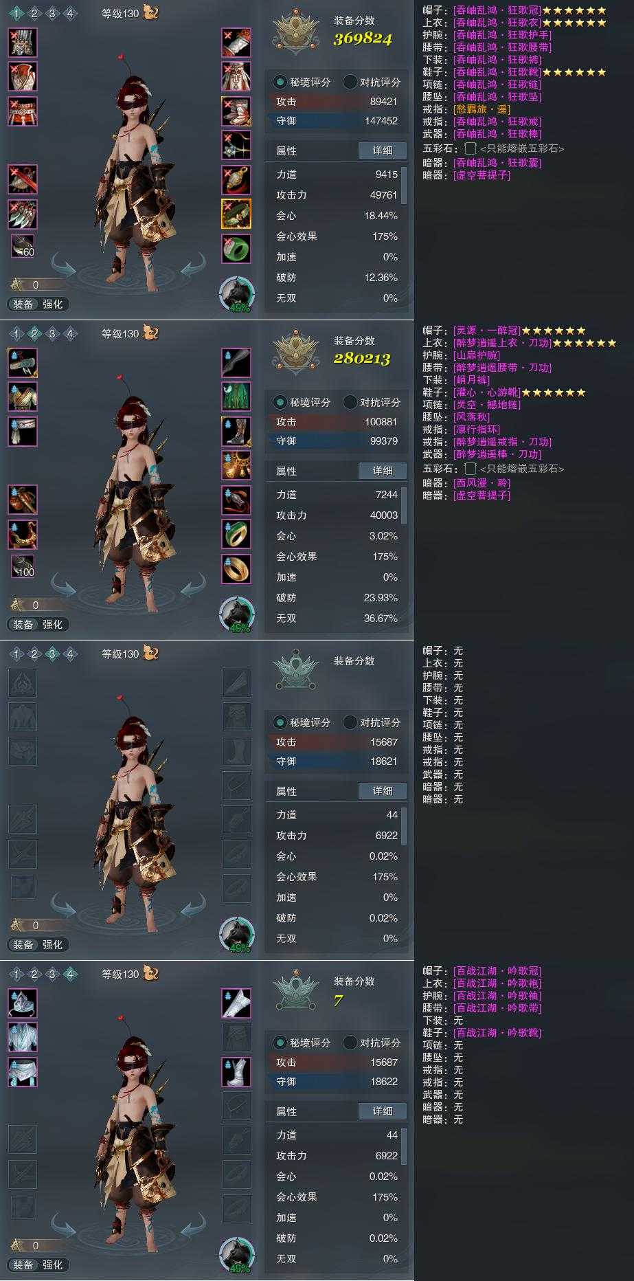 【装备】130级,笑尘诀PVP369824,装备二280213,装备三0,装备四7