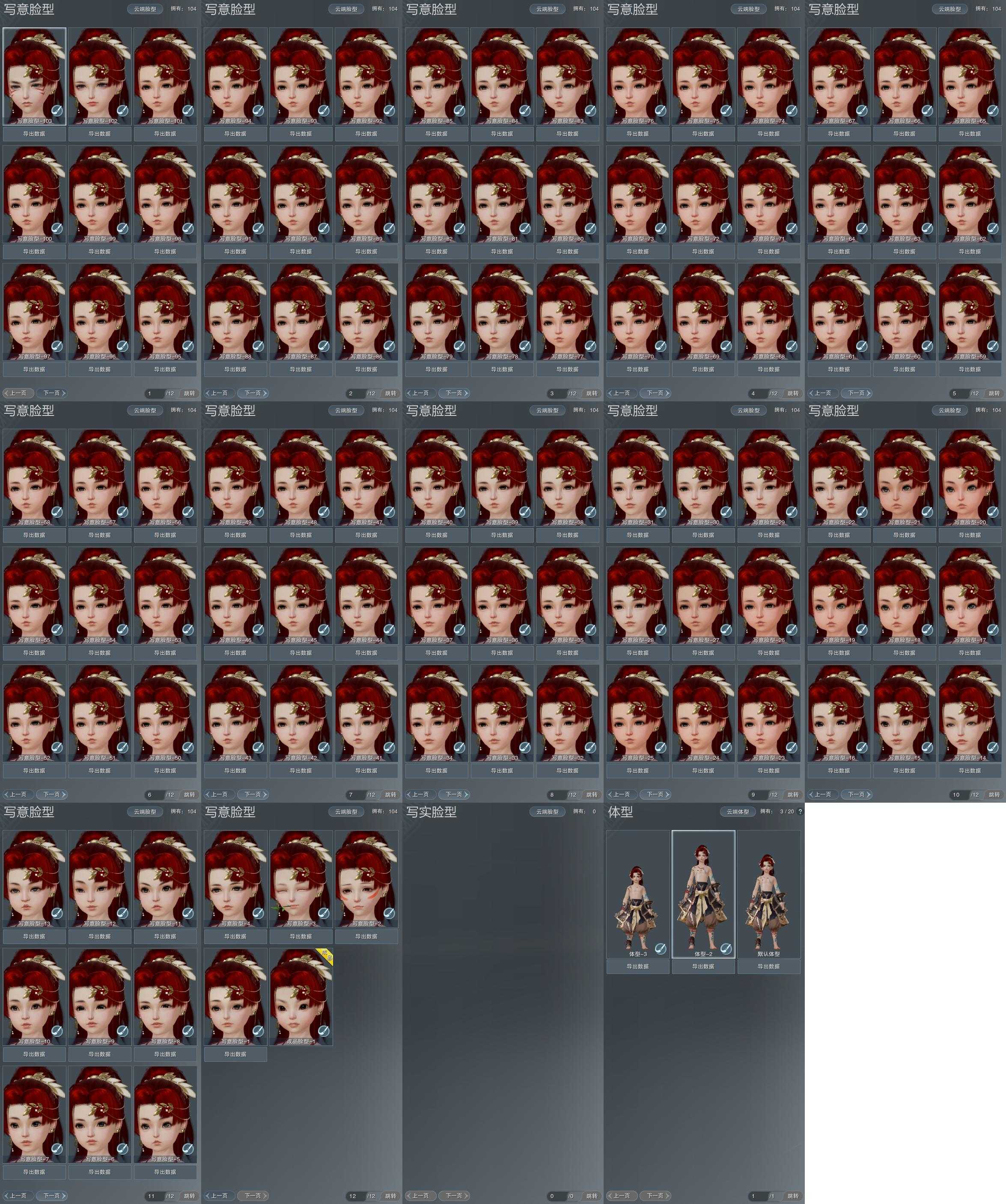【捏脸】写意脸型104个,写实脸型0个,体型3个