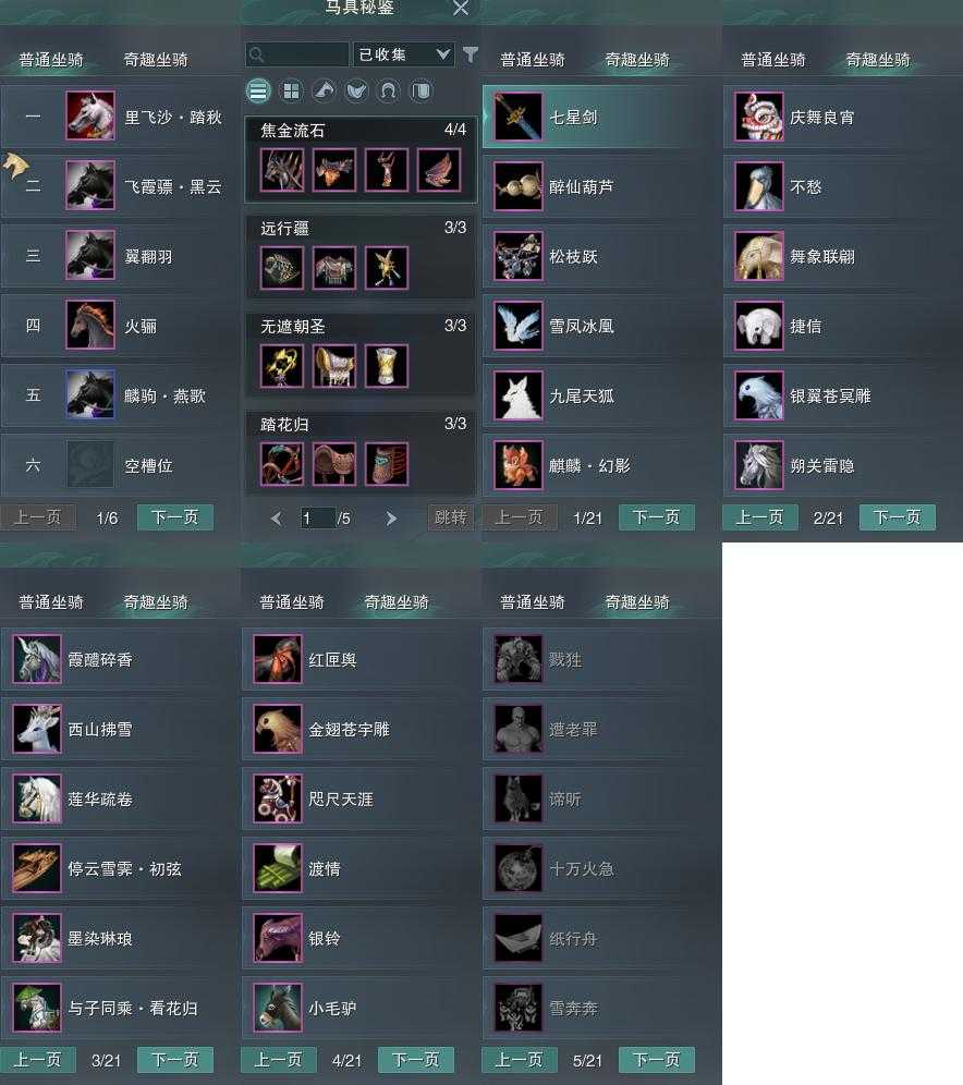 【坐骑】5个[飞霞骠黑云, 里飞沙踏秋]