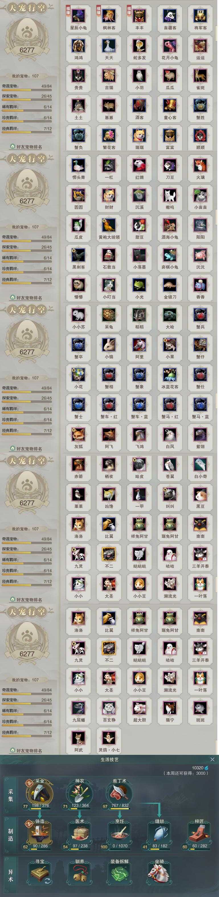 【同伴】茸茸67级境界壹,年小鹿10级境界壹,沈剑心级,康宴别级,唐小珂级,沐晴柔级,温折枝级,阮归云级,温辞秋级,年小熊级,阮闲舟级,李星云级,月嘉禾级,贺闲级,费大劲级,白鹊级,盖聂级,卫庄级,李逍遥级,赵灵儿级