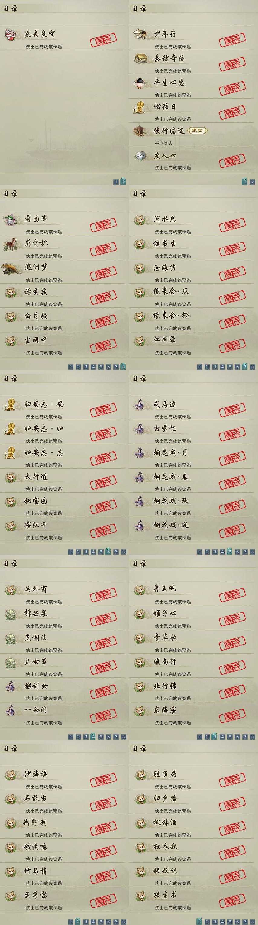 【奇珍】48个[枫林酒, 红衣歌, 归乡路, 胜负局, 孩童书, 捉妖记, 至尊宝, 石敢当, 稚子心, 滇南行]