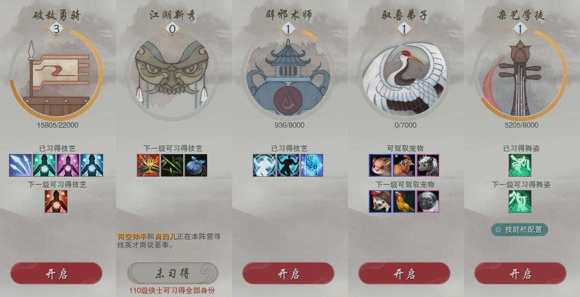 【奇遇】7个[平生心愿, 惜往日, 少年行, 茶馆奇缘, 侠行囧途, 庆舞良宵, 度人心]