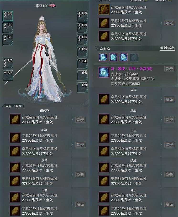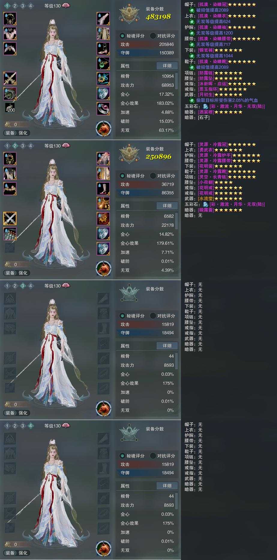 【装备】130级,冰心诀PVE483198,装备二250896,装备三0,装备四0