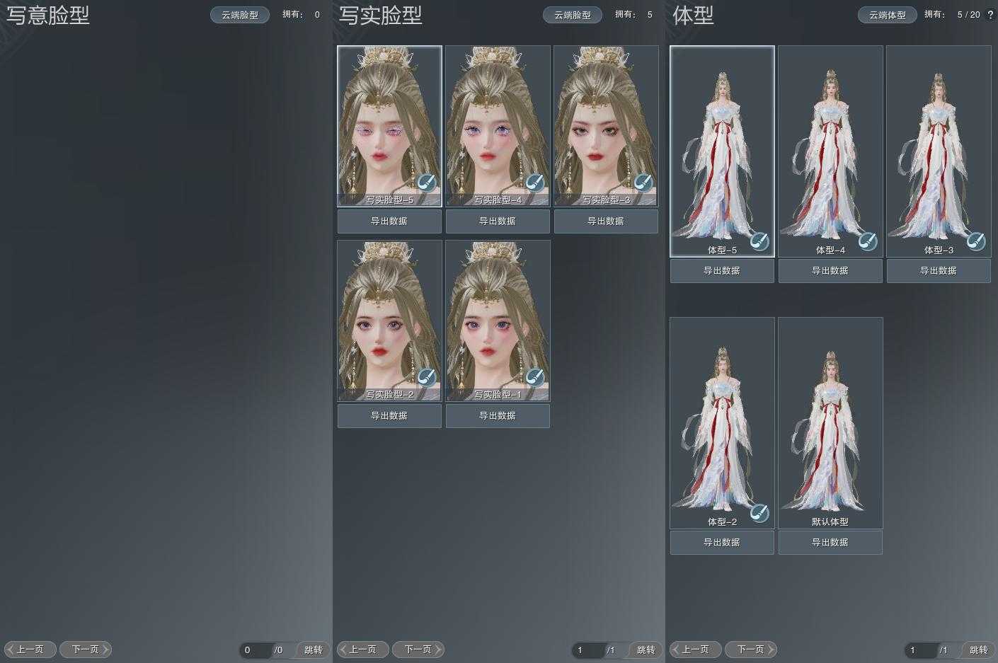 【捏脸】写意脸型0个,写实脸型5个,体型5个