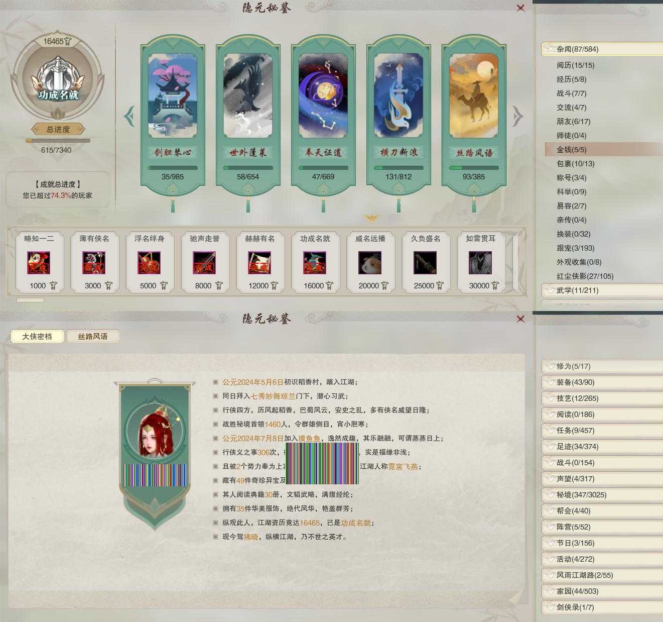 【同伴】康宴别74级境界壹,沐晴柔74级境界壹,李星云74级境界壹,白鹊74级境界壹,盖聂74级境界壹,卫庄74级境界壹,李逍遥74级境界壹,沈剑心73级境界壹,月嘉禾73级境界壹,赵灵儿73级境界壹,温折枝54级境界壹,年小鹿1级境界壹,唐小珂级,阮归云级,温辞秋级,年小熊级,阮闲舟级,茸茸级,贺闲级,费大劲级