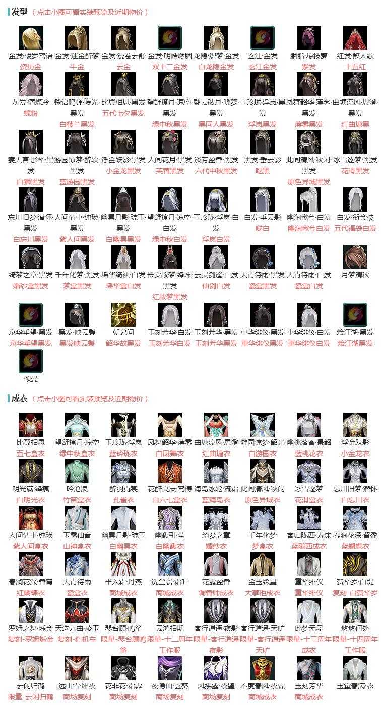 限时限量:[云闲归鹤, 客行逍遥天旷, 琴台顾鸣筝, 十三周年成衣, 十四周年工作服, 十二周年工作服, 客行逍遥夜影, 重华绯仪]