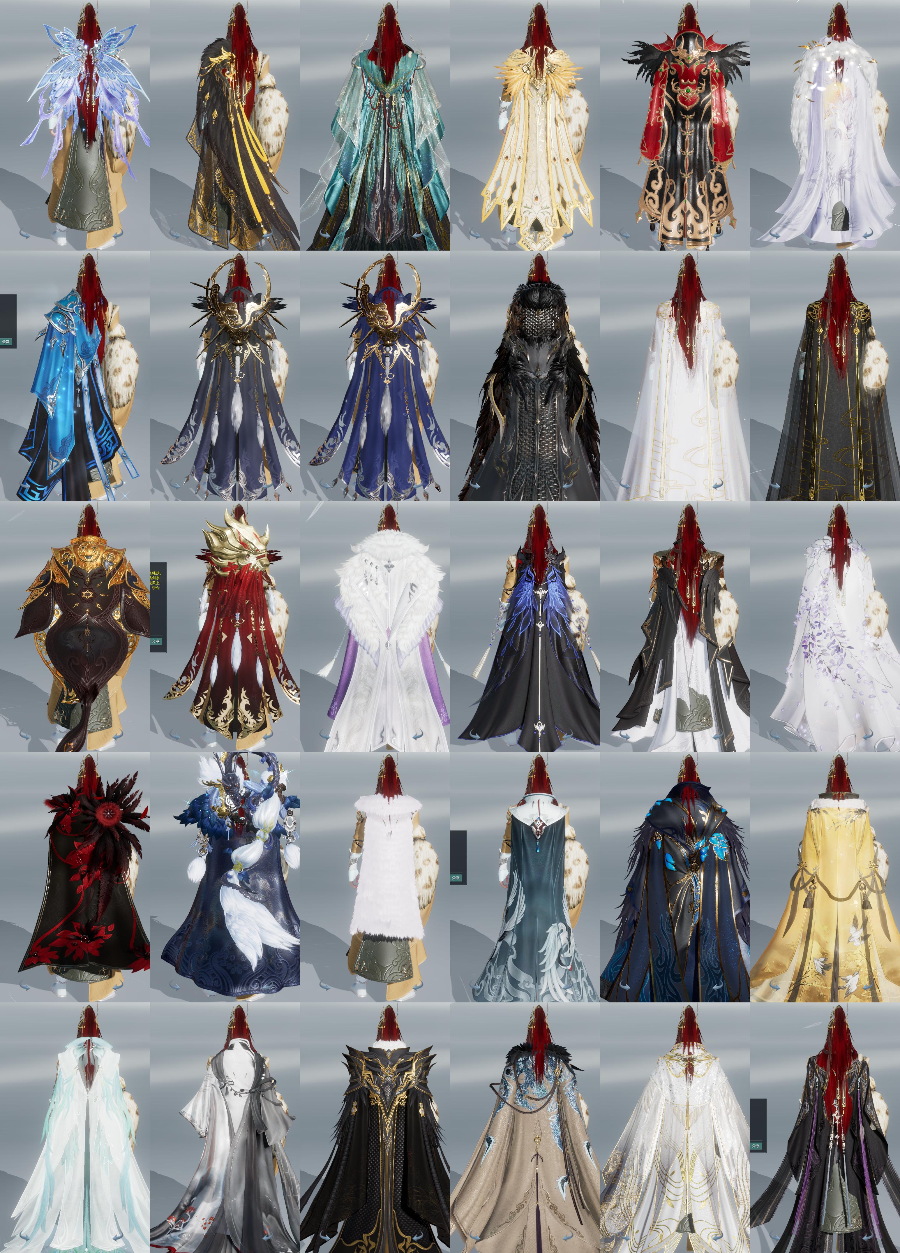 【披风】48个,[7W资历披风, 天火之眼, 熔金烈风, 雪啸刚风, 夜泊蝶影, 衍天预热披风, 黑盒子披风, 情R枕, 14W资历披风, 战服浩气, 青盒子披风, 三山披风, 奇遇披风, 唐盒子披风, 叽盒子披风, 秃盒子披风, 歌盒子披风, 周公御龙, 苍盒子披风, 丐盒子披风, 星演披风, 二代花盒披风, 药盒披风, 浮刃, 白山河, 素玉琼天, 玄锦流渊, 星河玄梦, 晓梦披风]